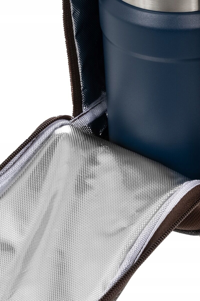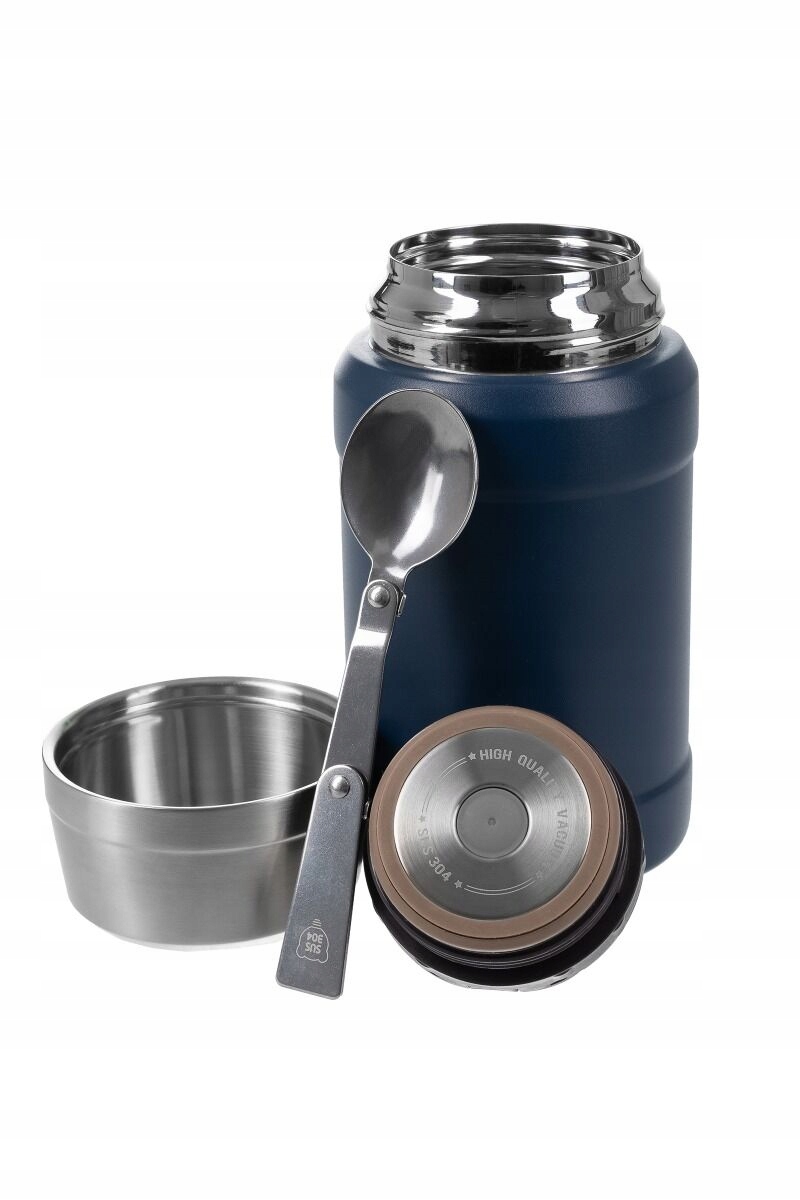 Він виготовлений з нержавіючої сталі найвищої якості. Двошарова конструкція гарантує тривале збереження тепла. Щоб ще краще підтримувати температуру його вмісту, ви також можете використовувати термосумку, що входить у комплект. Його внутрішня частина була обшита ізоляційною плівкою. У знімному ковпаку, під кришкою, є складна сталева ложка.
