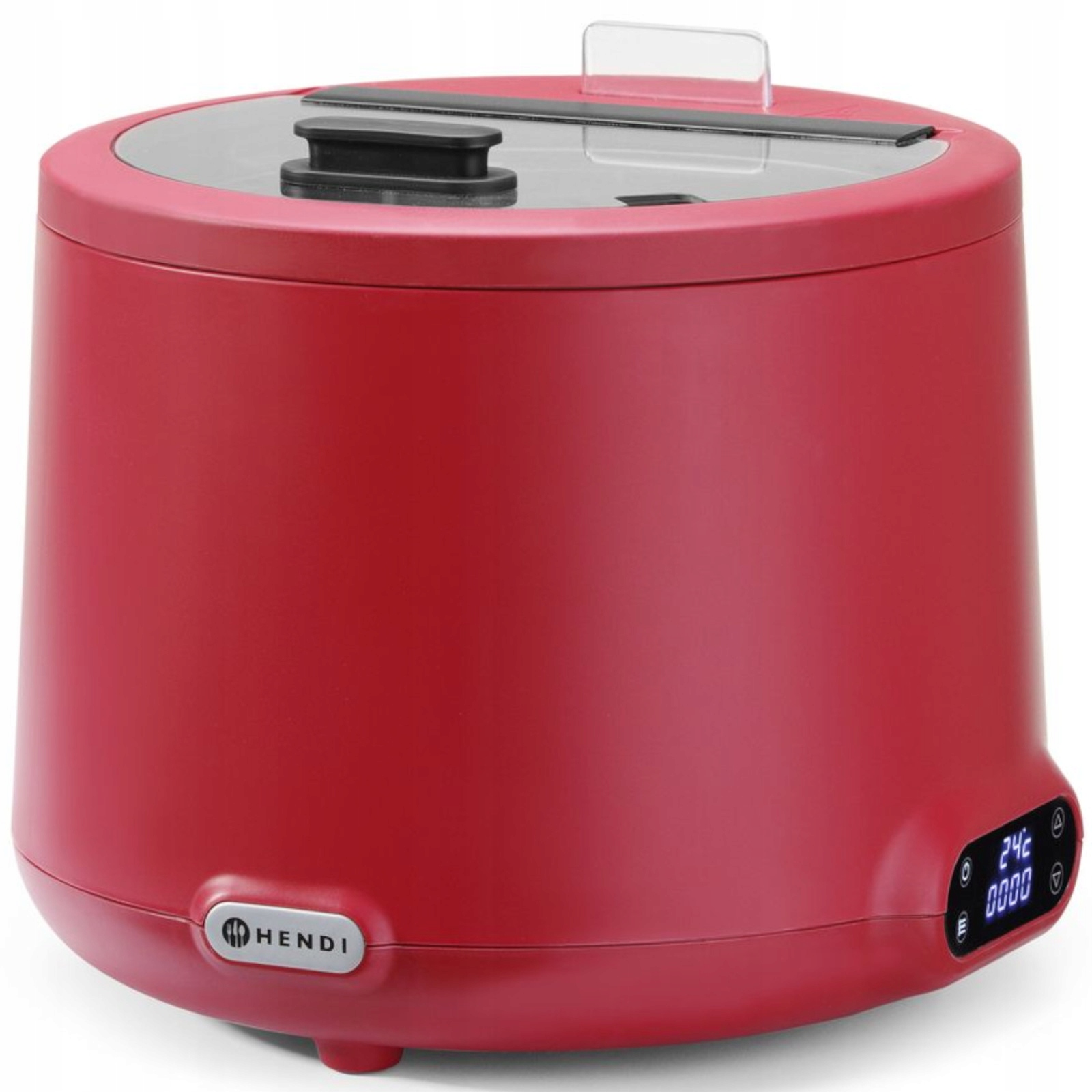 Термос HENDI UNIQ розроблений відомим голландським дизайнером Робертом Бронвассером і доступний у 4 стильних кольорах. Прилад має сучасний корпус і відрізняється кількома незвичайними функціями. Термос запам'ятовує останню встановлену температуру нагріву. Просто підключіть його до мережі, наповніть ємність водою, і каструля підтримуватиме постійну ідеальну температуру супу для подачі.