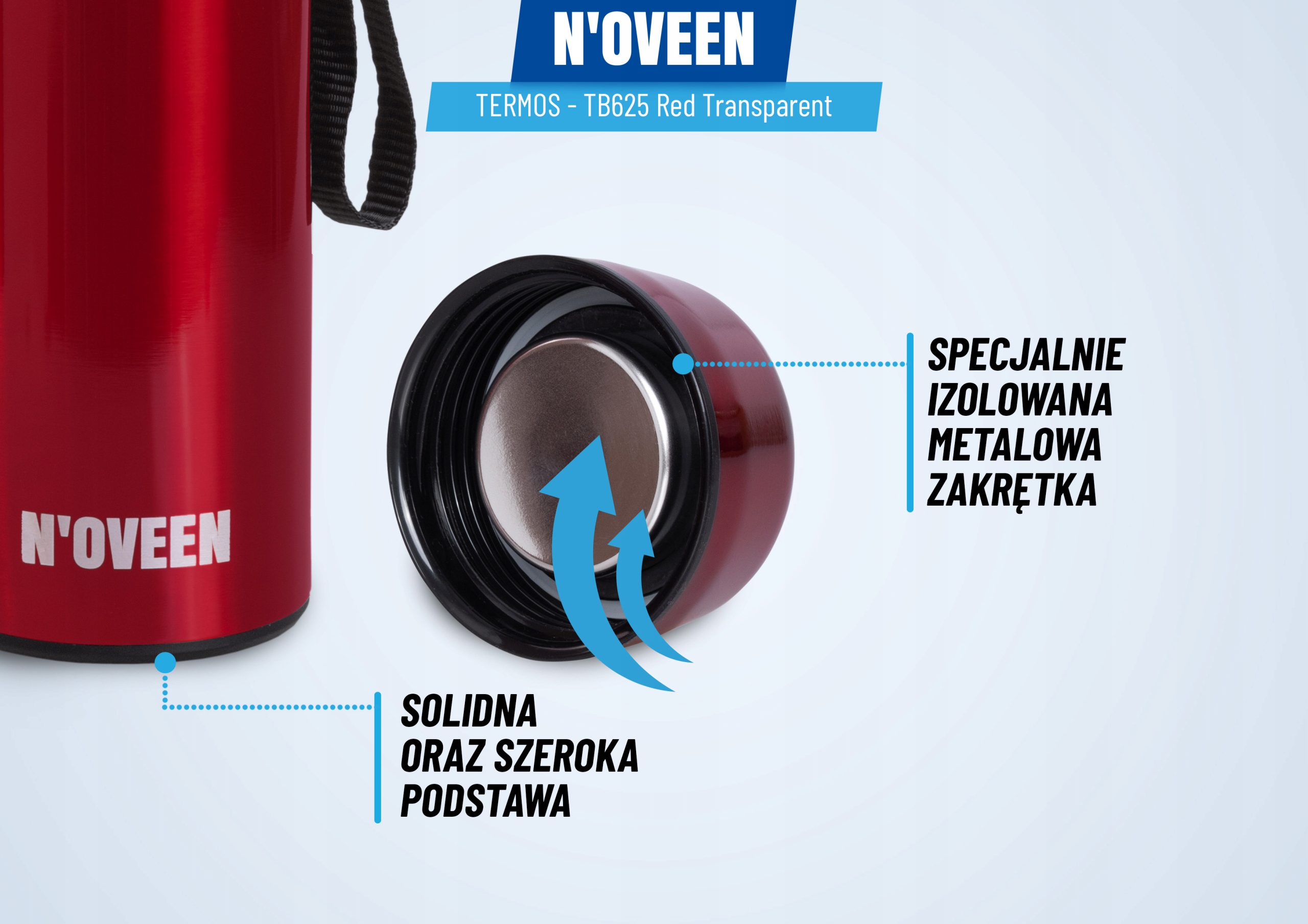 Термос Noveen створений для зручного та естетичного зберігання ваших улюблених напоїв. Зберігаючи високу і низьку температуру напоїв, термос корисний цілий рік, незалежно від погоди. Він виготовлений із матеріалів, які не містять BPA.