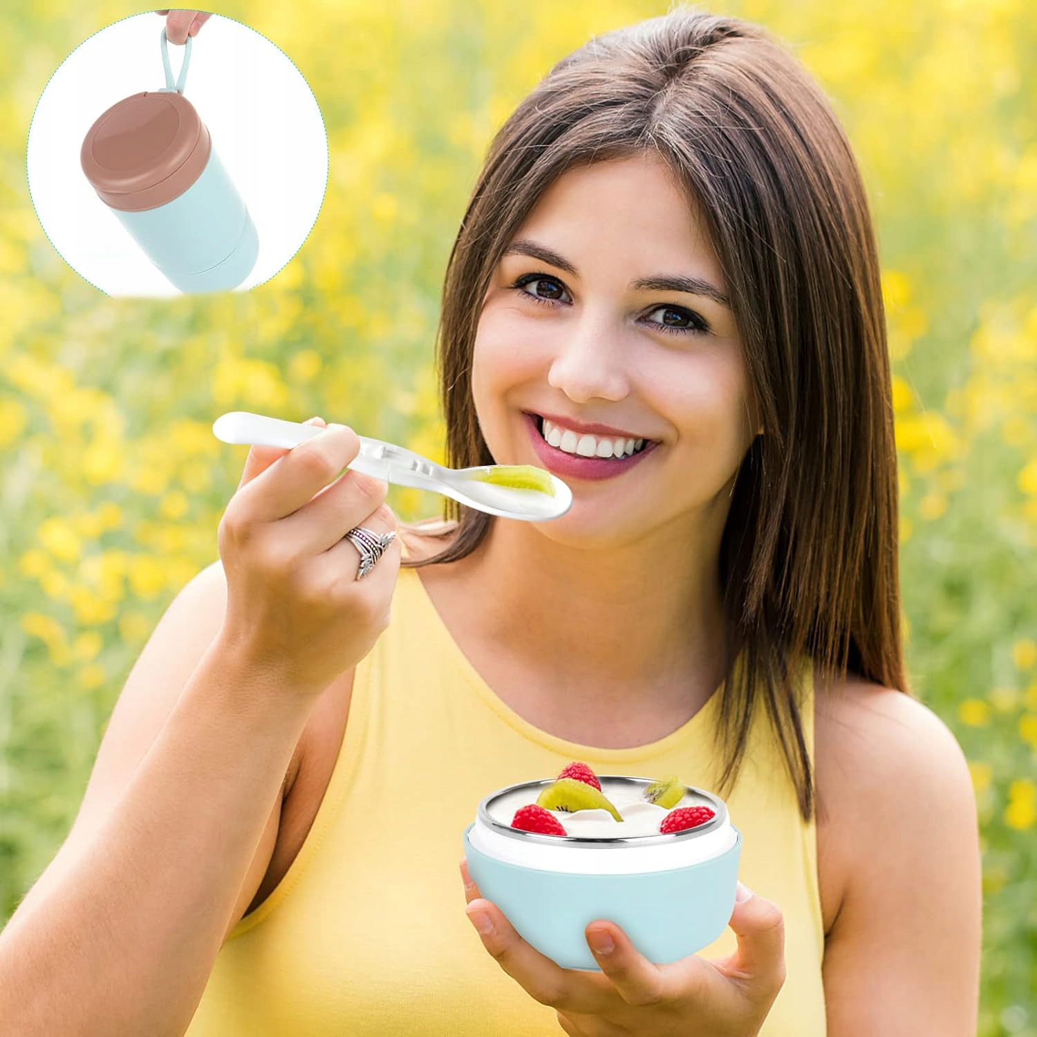 Практичний стаканчик для йогурту з ложкою для дітей, коробка для обіду з відділенням, стаканчик для йогурту для пластівців, контейнер для гарячої їжі, ідеальний для дорослих, дітей, студентів, робочих місць, подорожей, походів, пікніків і активного відпочинку.
