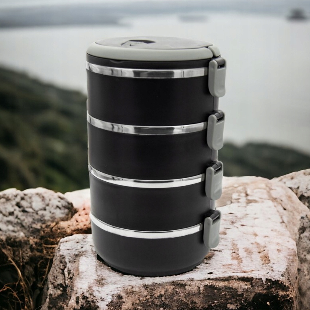 Інвестуйте в комфорт і здоровий спосіб життя, обираючи наш термос для обіду з 4 частин. Завдяки трьом контейнерам ви можете брати різноманітні страви з собою, завжди створюючи свіжі та збалансовані страви. Насолоджуйтесь смачними та гарячими стравами, де б ви не були!