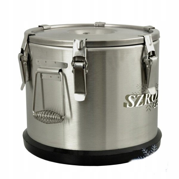 Термос з нержавіючої сталі об'ємом 10 літрів, з подвійними стінками з утеплювачем і подвійною кришкою з силіконовою прокладкою і вентиляційним отвором. Термос має кришку, що закривається на 6 міцних засувок і міцні ручки, що не нагріваються. Крім того, термос має прогумовану основу для захисту від можливих пошкоджень.