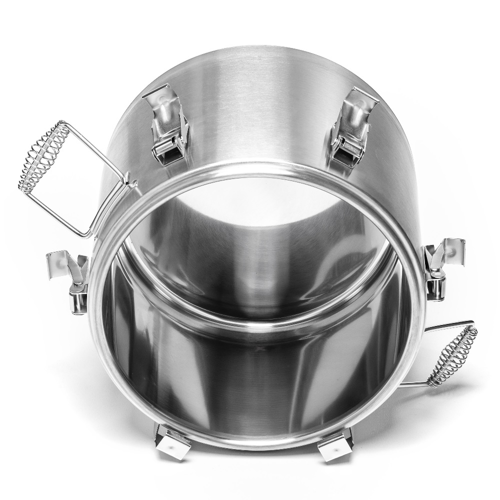 кришка закрита 6 сильними засувками. Силіконова прокладка в кришці додатково ущільнює термос, захищаючи її від витоку. Вентиляція на обкладинці дозволяє армасом відкриватися гарячою їжею. Ергономічні транспортні ручки для легкої передачі.