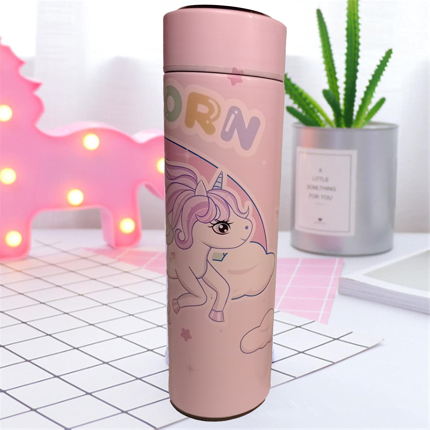 Термос теплова кухольна пляшка для напоїв єдиноріг світлодіодний дисплей
