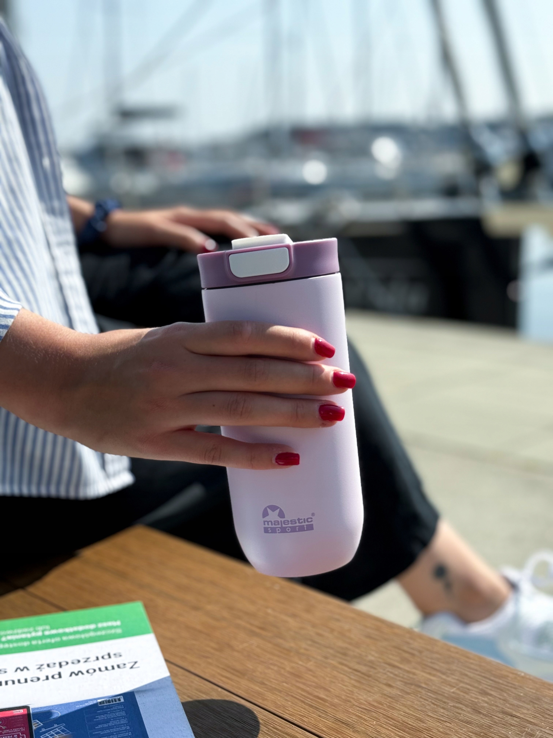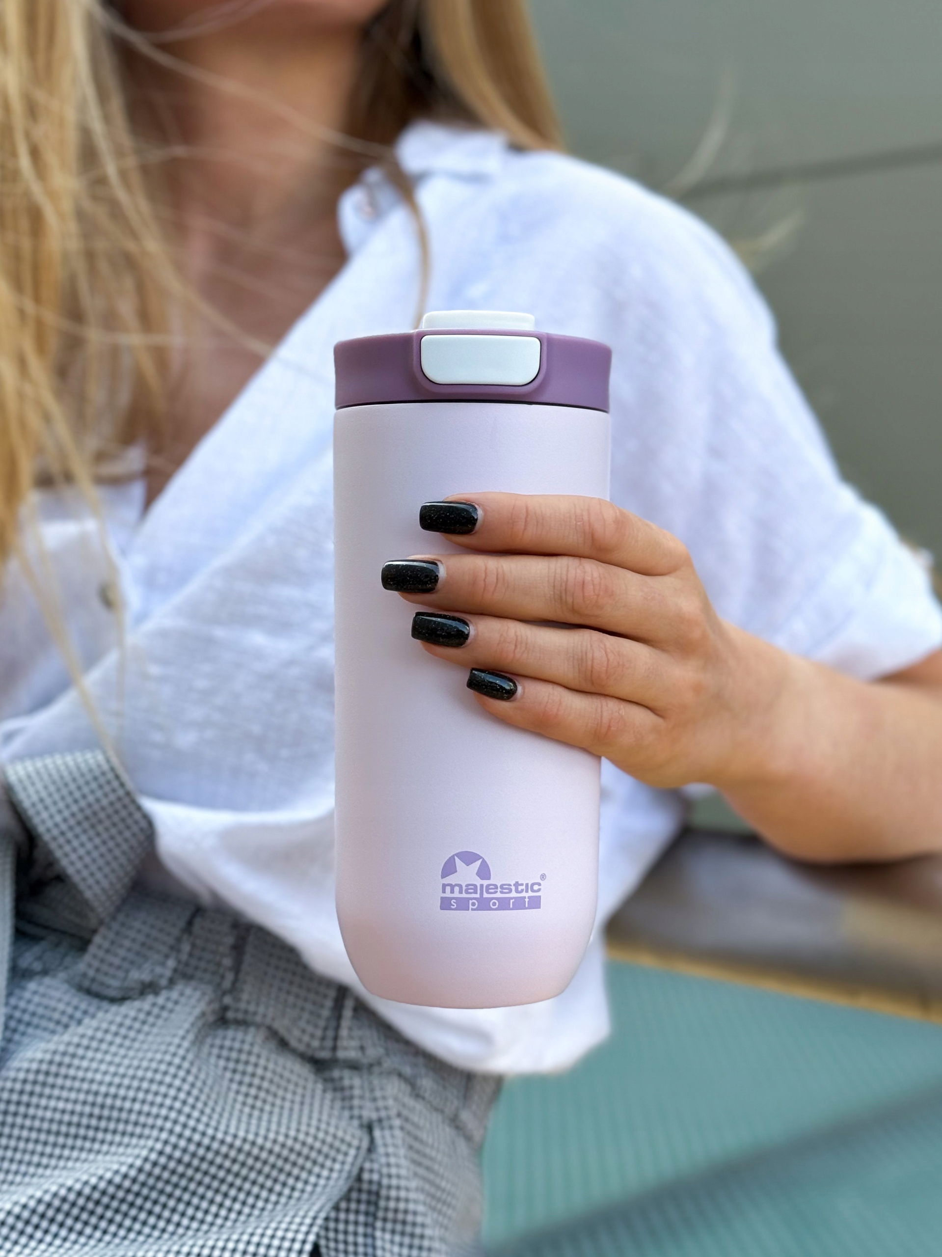 · Majestic Sport Bullet - це справжня ракета серед термічних чашок - категорія зміни ігор. Просторий, щільно і тримає температуру довше, ніж верхній продукт конкуренції! Сталева конструкція Подвійні, утеплені стіни та тепловий комір для самої нитки гарантія Тепло обслуговування до 6 годин . Теплова кухоль кулі оснащена системою відкриття одного клацання , яку ви будете використовувати однією рукою. сумісність з більшістю ручок автомобілів робить це обов'язковим партнером вашої щоденної подорожі.