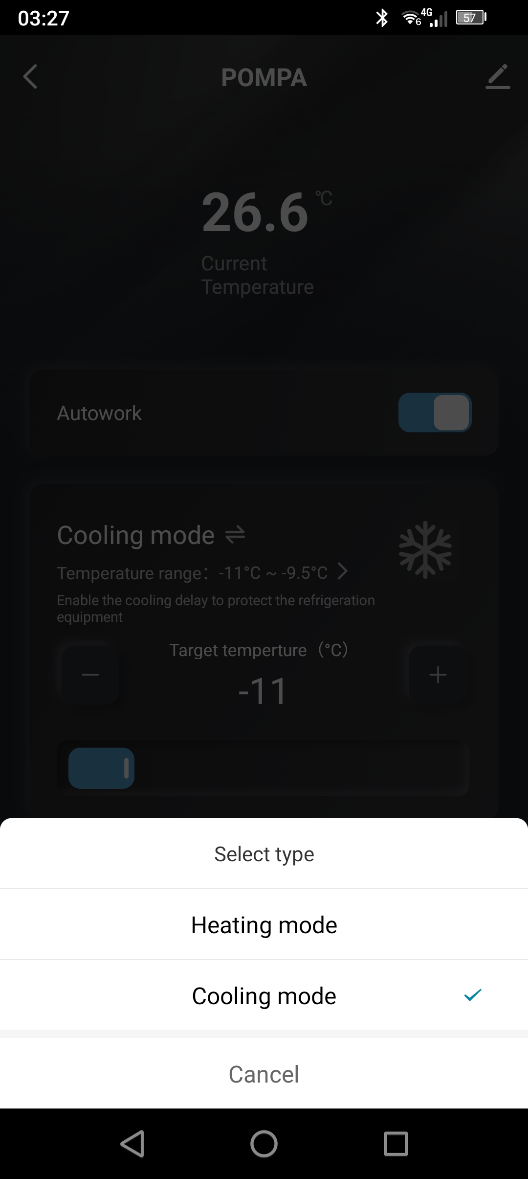 Автоматичний режим дозволяє легко налаштувати підлеглий пристрій - у режимі Обігрів обладнання включається, коли температура падає нижче встановленого значення, і вимикається, коли задана температура досягається. Однак у режимі охолодження пристрій працює, поки температура не знизиться до певного рівня. Функція відкладеного запуску також доступна, якщо виконуються певні умови.