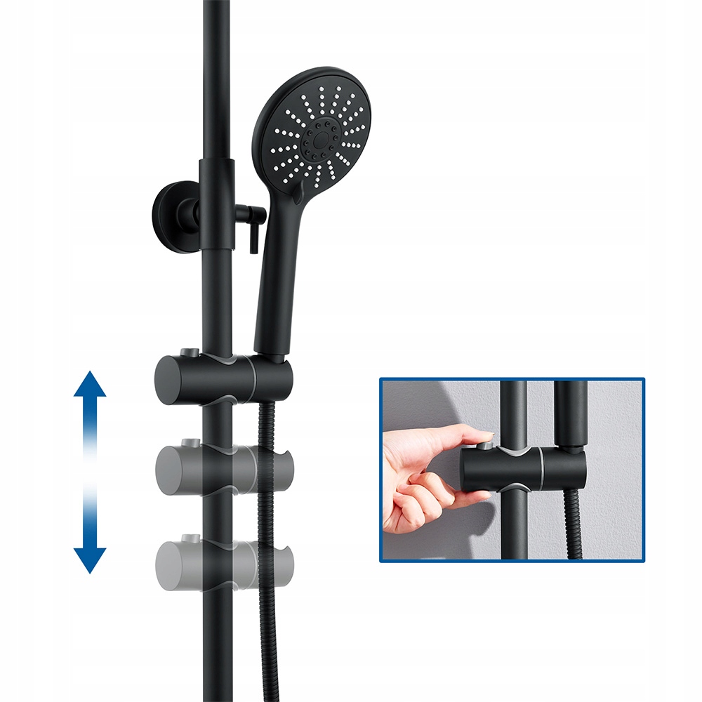 ✔ Регульована висота душової штанги: 84-121 см після встановлення