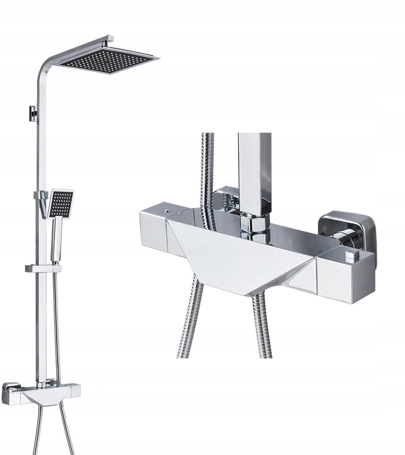 Колір хром + душова лійка та кран з геометричним дизайном | ТЕРМОСТАТИЧНА БАТАРЕЯ