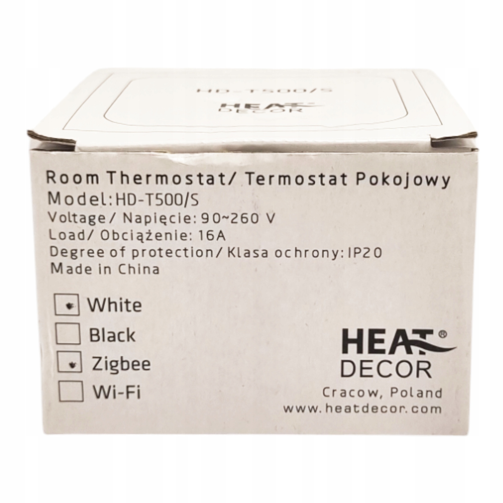 В набір входить: програмований термостат Heat Decor HD-T500/S Zigbee White, коробка.