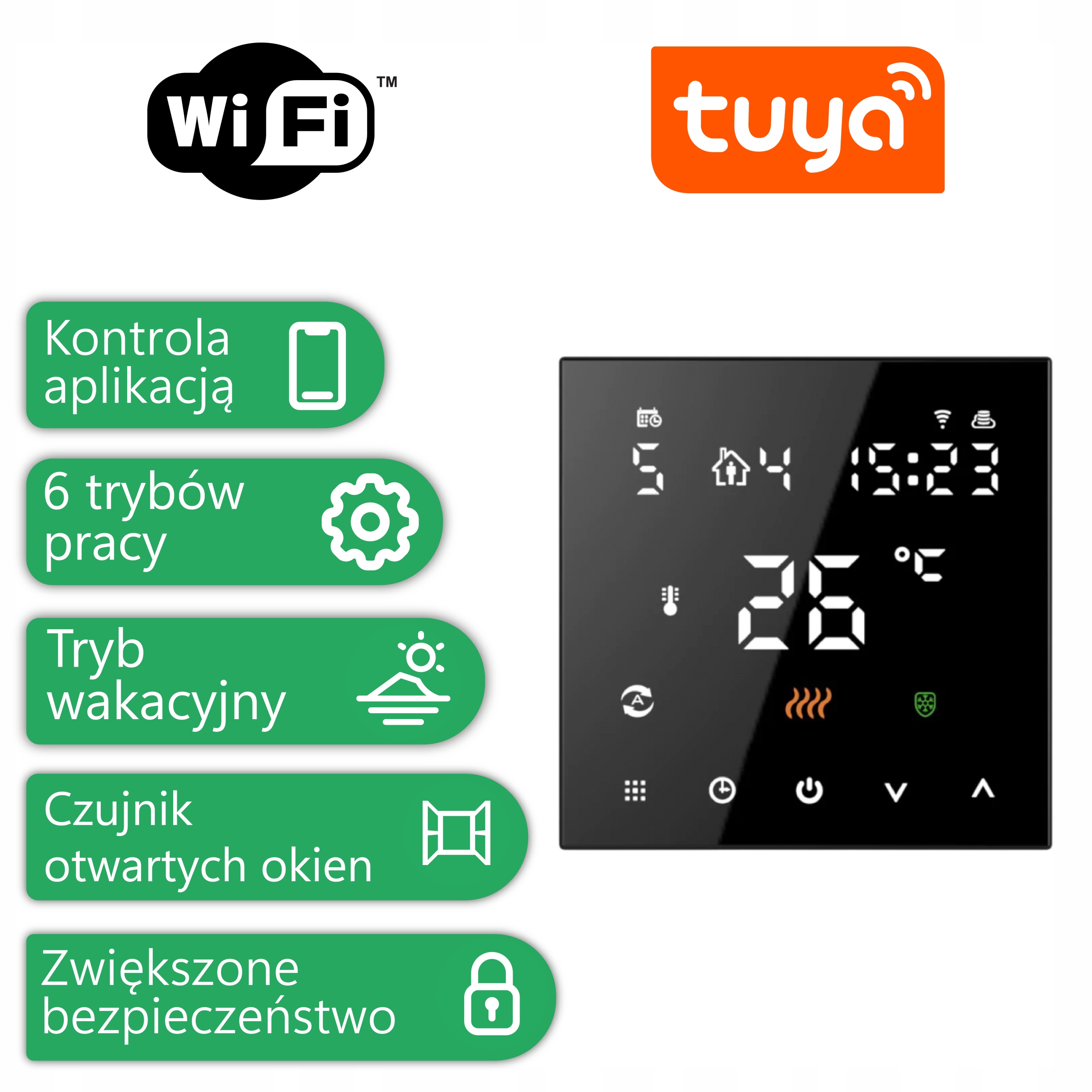 Інтелектуальний терморегулятор для електричної теплої підлоги або нагрівальний мат R607 16A працює в системі TUYA з функцією підключення WiFi від Reptila - чорний