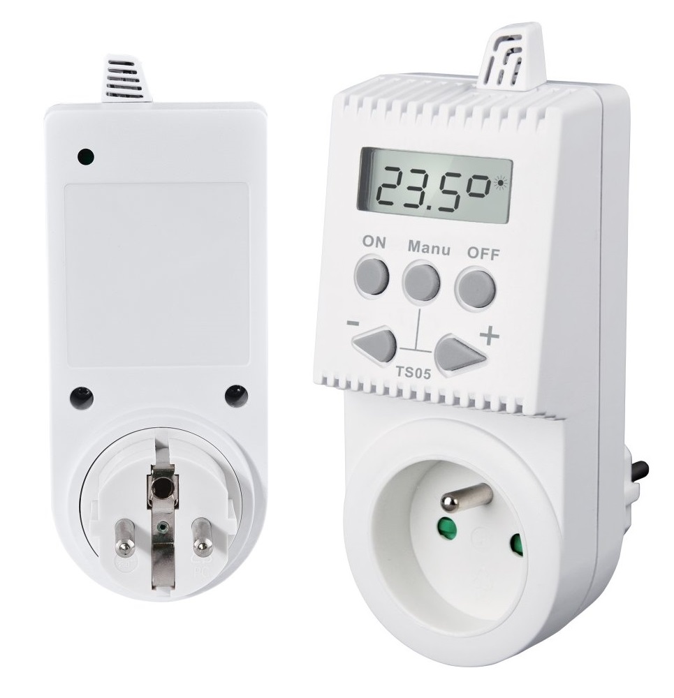 TS05 - це розетковий термостат (термореле) з функціями контролю температури. Використовується для регулювання електричних нагрівальних пристроїв, таких як електричні обігрівачі, інфрачервоні панелі, конвектори, масляні обігрівачі, електричні рушникосушки тощо.