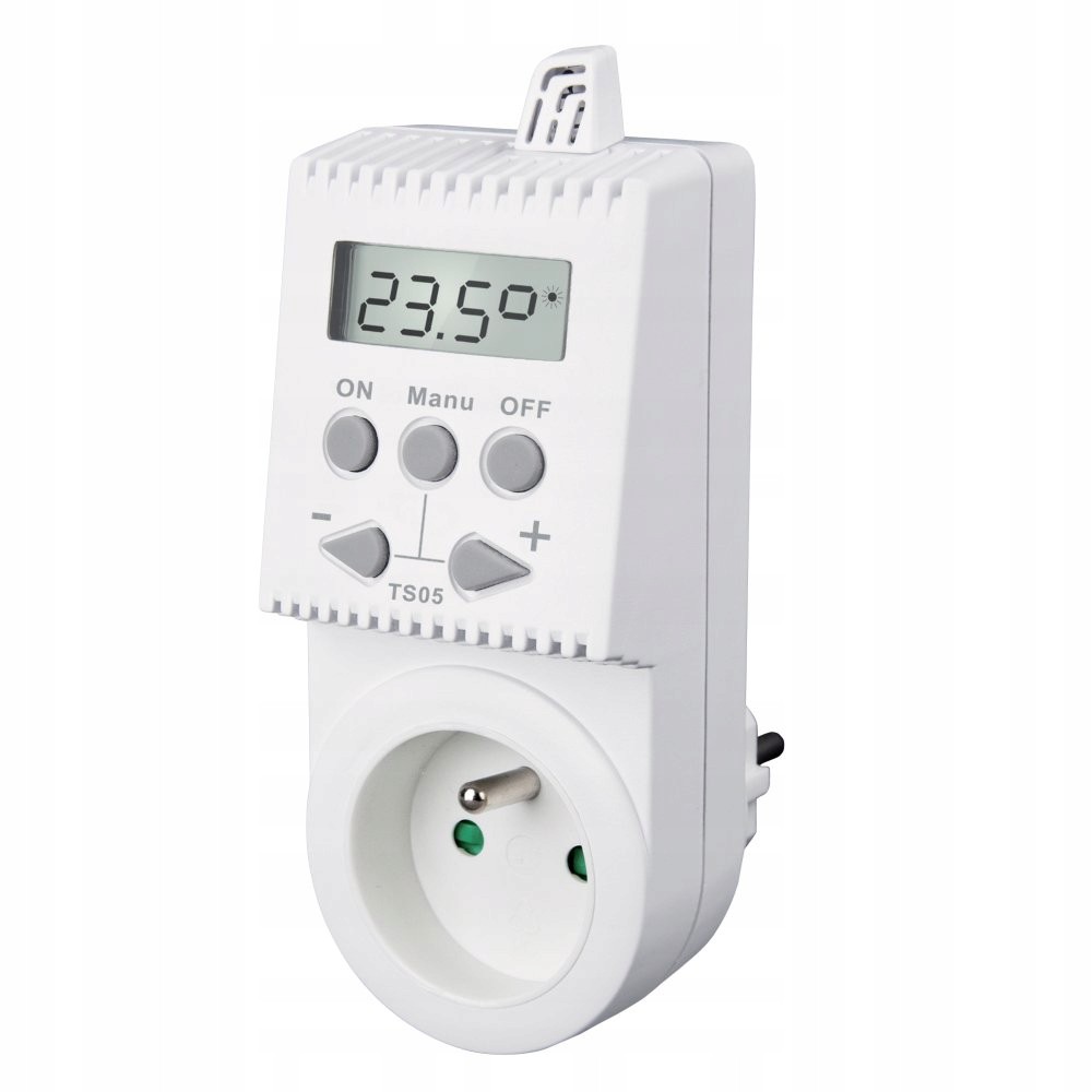 !УВАГА! - Розетковий термостат TS05 не має тижневого програматора. Якщо вас цікавить розетковий термостат із тижневим програмуванням, перегляньте інші наші аукціони. Термостат розетковий з функцією програмування Elektrobock TS10 і TS20