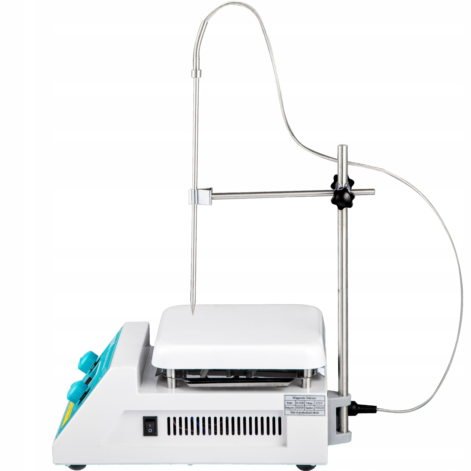 Тефлонова мішалка: тефлонова мішалка з’являється в результаті, щоб забезпечити швидкий рух, завдяки незабрудненому тефлоновому покриттю, яке не питання з перемішуванням. Ця магнітна мішалка з конфоркою працює дуже тихо, навіть на високій швидкості. нековзкі накладки для ніг, більш стійкі змішувачі. Також містить підставку.