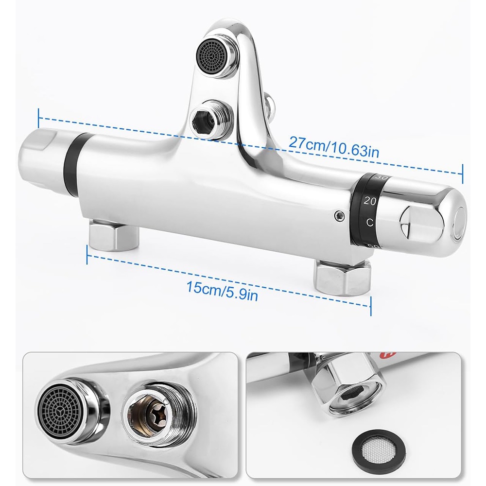 💎Цей термостатичний душовий клапан для ванни виготовлено з високоякісної міцної латуні з міцним хромованим покриттям, стійким до корозії, вологи, іржі, міцним і легким для чищення. очищення.