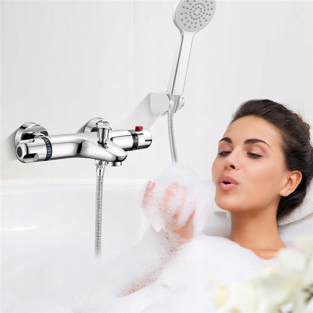 💎Наш термостатичний змішувач для ванни автоматично вирівнює тиск гарячої та холодної води, підтримуючи стабільну температуру води за короткий час без необхідності ручного регулювання.