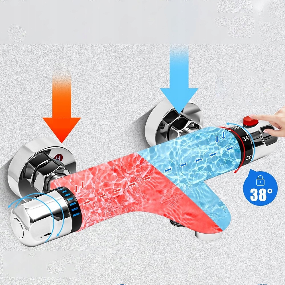 💎Термостатичний змішувач для ванни та душу точно регулює потік і температуру води. Діапазон температури води на виході становить 20-50°C, а термостатичний душовий змішувач заблоковано на 38°C.