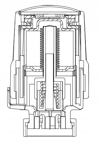 Усередині термостатичної головки є гнучкий сильфон, наповнений рідиною з високим тепловим розширенням, яка реагує на зміни температури навколишнього середовища. З підвищенням температури в приміщенні тиск і об’єм рідини всередині сильфона зростає, що змушує його тиснути на штовхач головки.