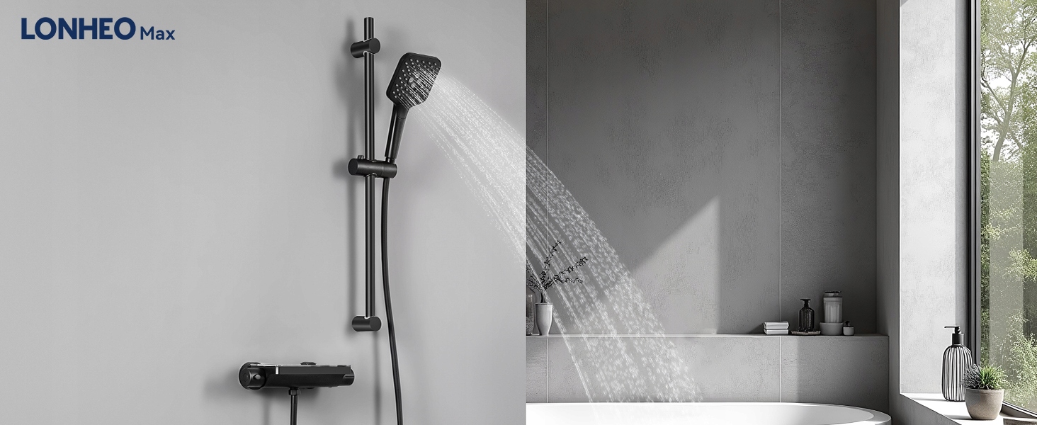 Термостатичний змішувач для душу з настінним душем, чорний