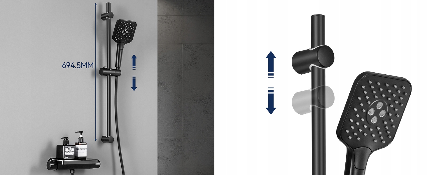 ✧ З розсувним кронштейном для душа, який регулюється для різної висоти та кута.