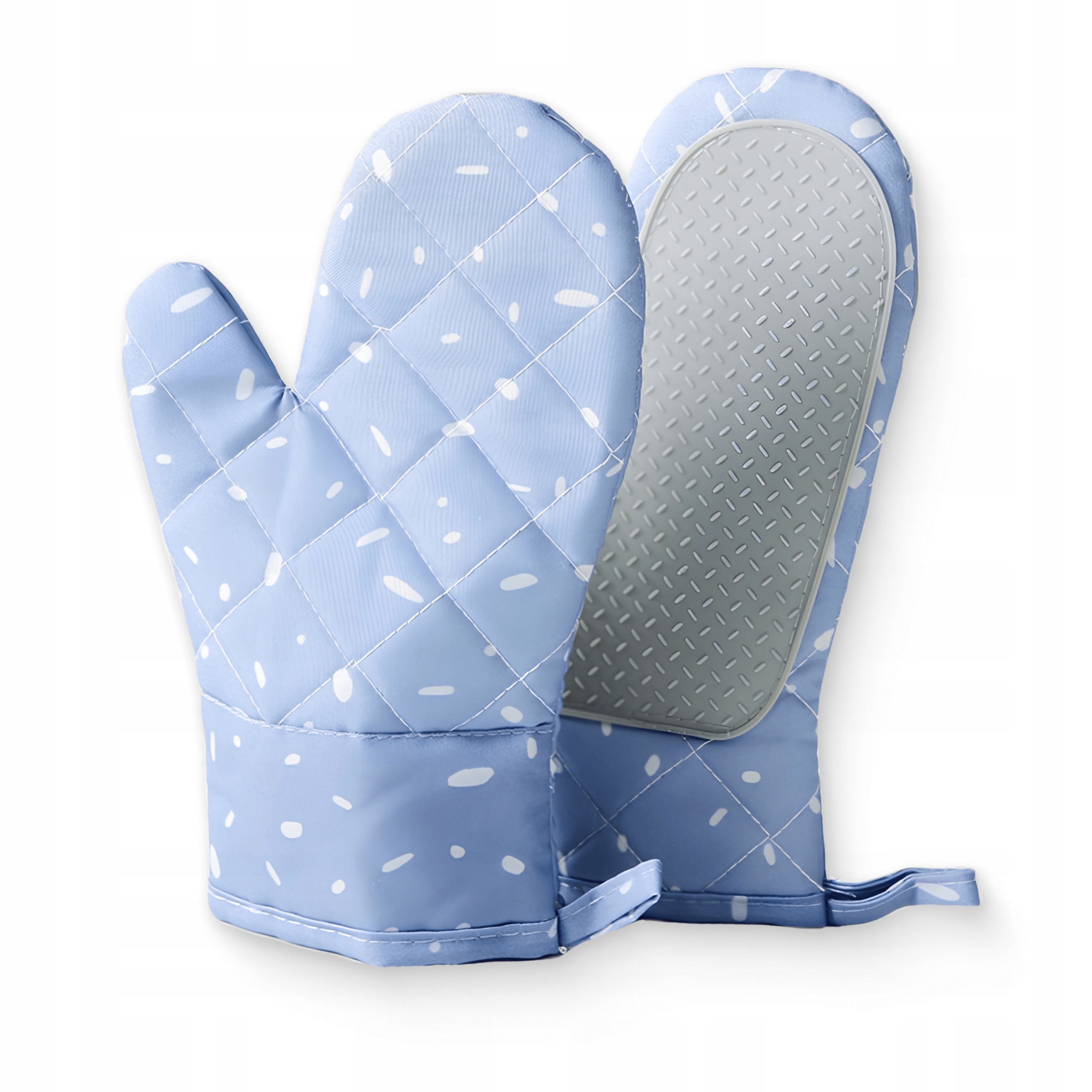 Рукавички оснащені вушком для підвішування, що полегшує їх зберігання на кухні.