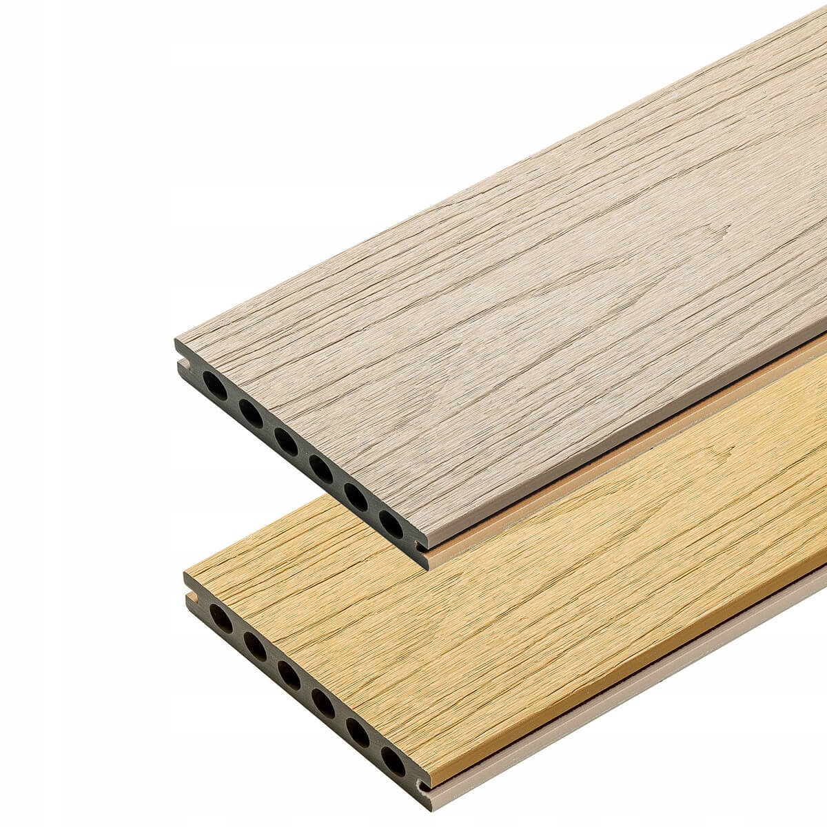Композитна дошка Premium Composite нового покоління – це високоякісний продукт. Завдяки сучасній технології виробництва дошка має характерну структуру натурального зерна дошки. Деревний малюнок вибитий на поверхні за допомогою пресів при високих температурах із зовнішнім полімерним покриттям, яке оточує дошку з усіх боків і захищає її від плям і втрати кольору. Завдяки цьому методу виробництва він також міцний і стійкий до стирання.