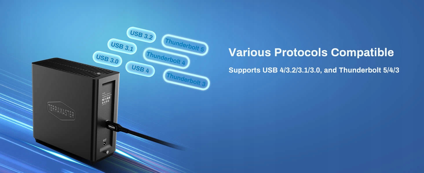 4 DAS повністю сумісний з протоколами Thunderbolt 3/4/5 та USB 4/3.2/3.1/3.0 , завдяки якому він пропонує виняткову сумісність між платформами, що робить його ідеальним для різних додатків.Основні програми Terraver D4 SSD