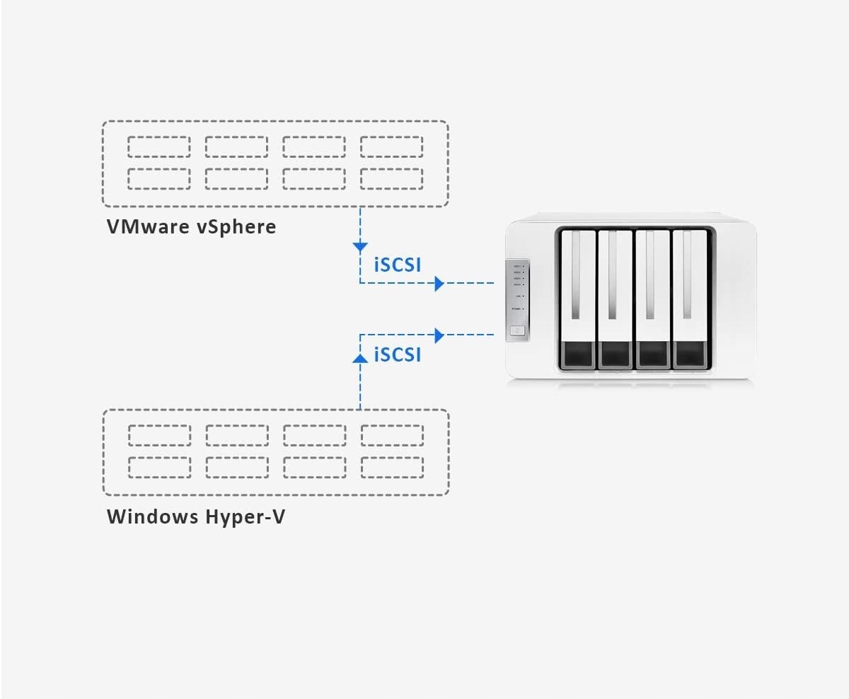 - Потужне апаратне забезпечення: чотирьохядерний процесор N5095 з частотою 2,0 ГГц, 4 ГБ оперативної пам’яті DDR4 (з можливістю розширення до 32 ГБ). Два порти 2,5 Gigabit Ethernet – підтримують до 5 Гбіт/с на агрегації каналів. 4-слотовий NAS, розроблений для високих вимог до продуктивності SMB.