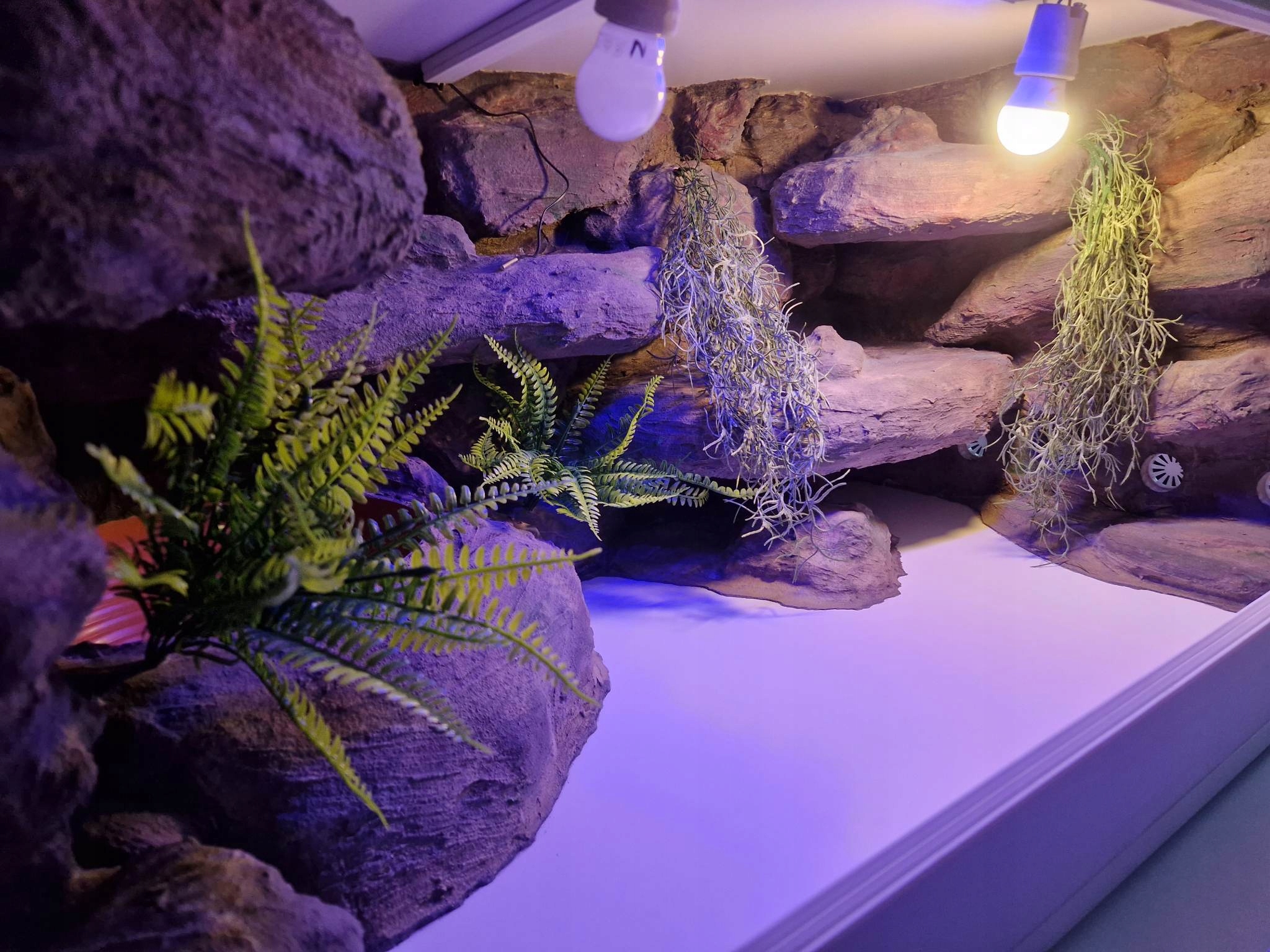 коріння, гілки, контролери, вимикачі, цибулини, черепи, гігрометри, басейни - видно в деяких зразках фотографій не є включено в основне обладнання тераріуму. Однак можна переробити резервуар для додаткового заряду.