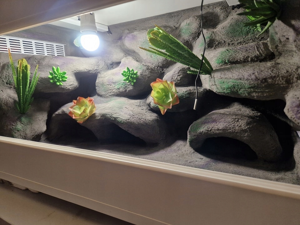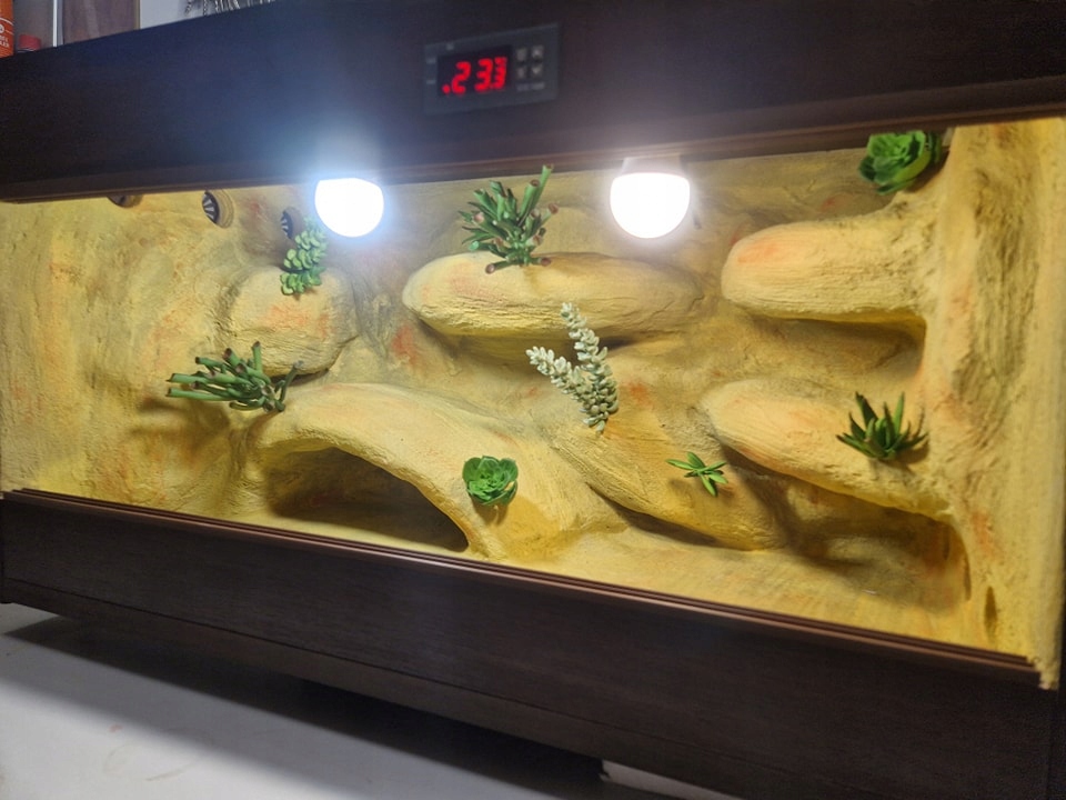 Фотографії показують тераріуми, які ми зробили для індивідуального порядку і можуть бути моделлю для наступних творів. Терарія, замовлена вами, не буде копією, як представлені нижче - але вони можуть бути подібними. Ми будуємо кожен танк з нуля. Покупець має можливість вибору скельної системи (наскільки це можливо) та фонового кольору тераріуму.
