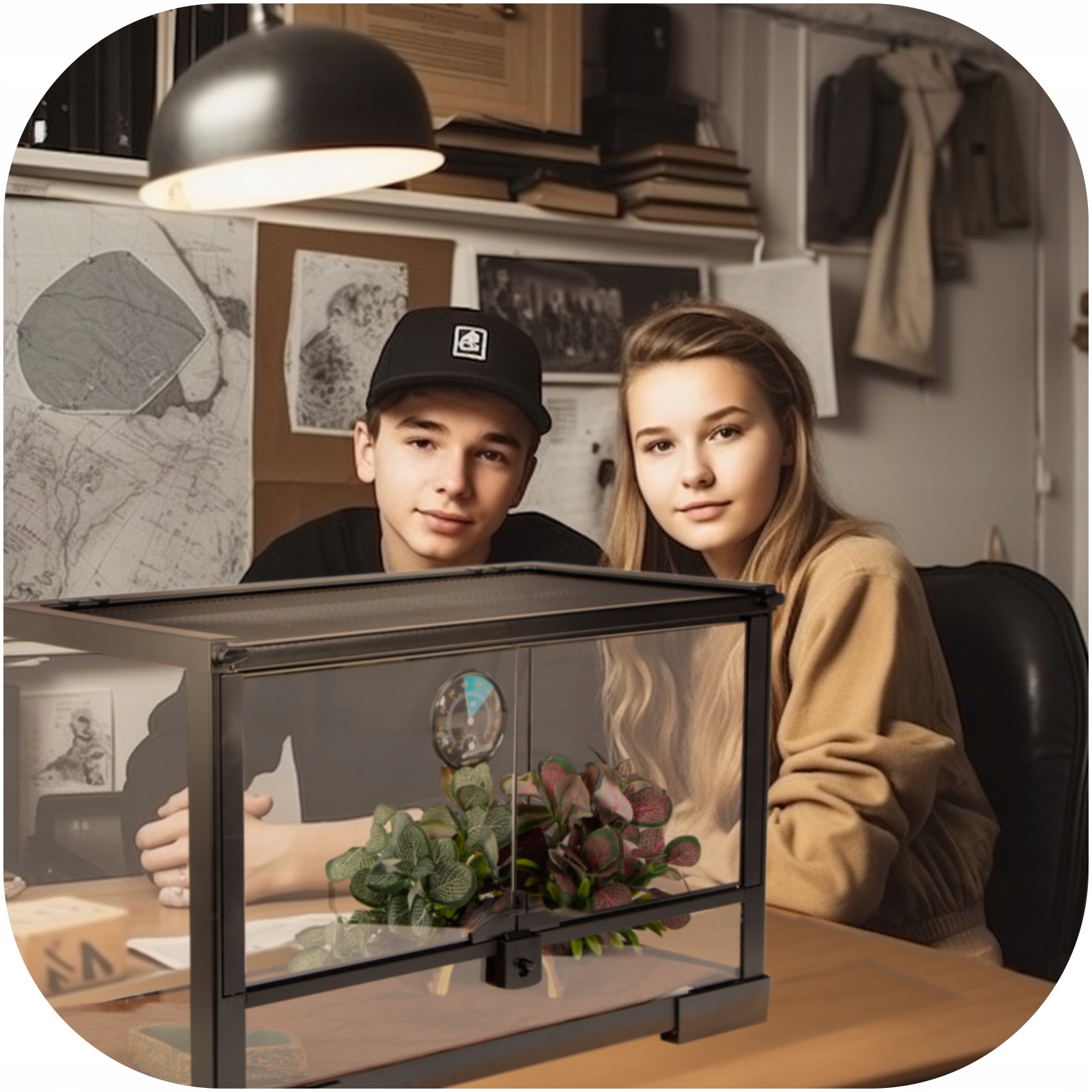 Усі елементи можуть бути промиті під проточною водою . Легкий доступ до центру та безпеки робить тераріум подарунком для наймолодших любителів рептилії. Більше того, виконання, водонепроникне дно або сталева верхня сітка на всій поверхні кришки зроблять тераріум, який також оцінили професійні заводчики.