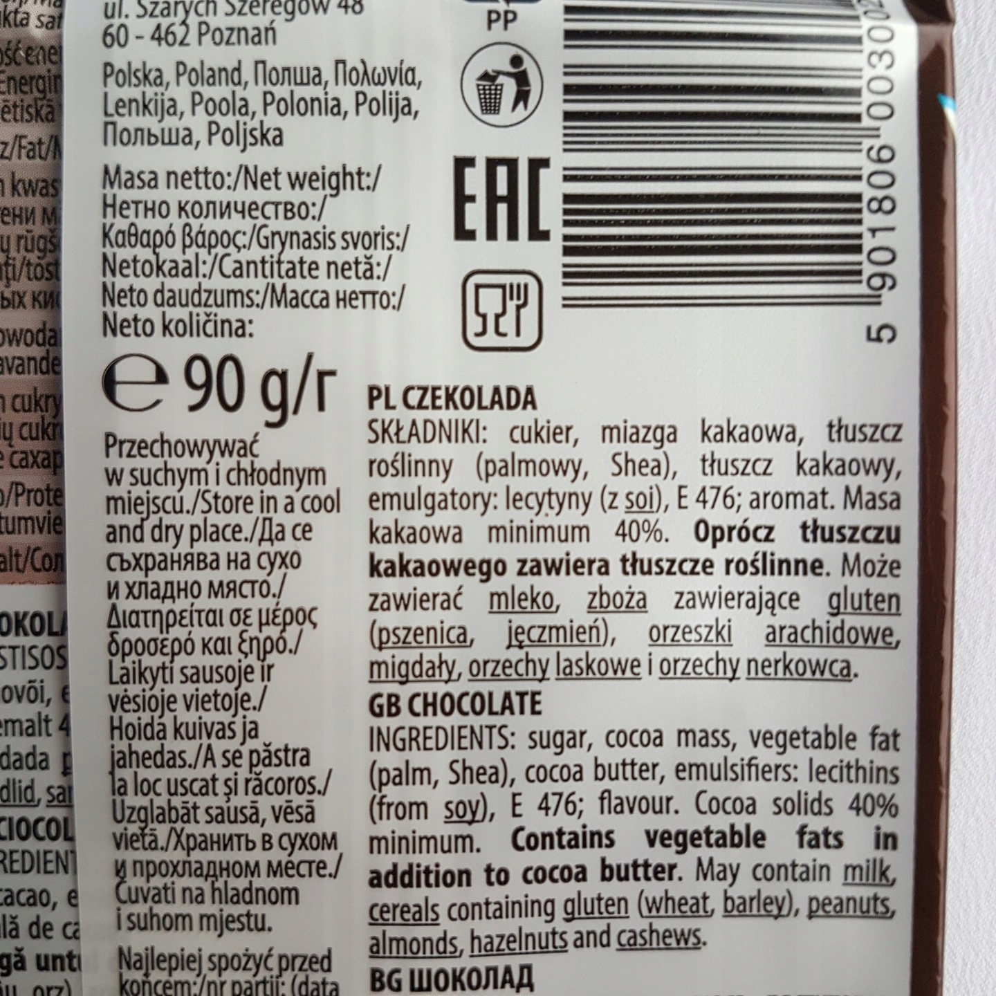 - Короховий шоколад, що містить мінімум 40% какао. Смак, міцно на землі. Він пропонує чудову якість за доступною ціною. Це чудовий, економічний варіант для всіх, хто шукає прості, перевірені рішення та хороші смаків під рукою.
