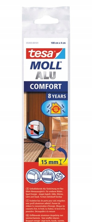 Само -адгезійна прокладка пензля для дверей комфорту Tesamoll® -це ідеальний, енергетичний захист від холодних струн повітря. Суцільна смуга, виготовлена з лакованого алюмінію, була розроблена для ущільнення кожної зазору під дверима, запобігаючи неприємним чернетам. Все, що вам потрібно зробити, - це прикріпити його в нижній частині дверей.