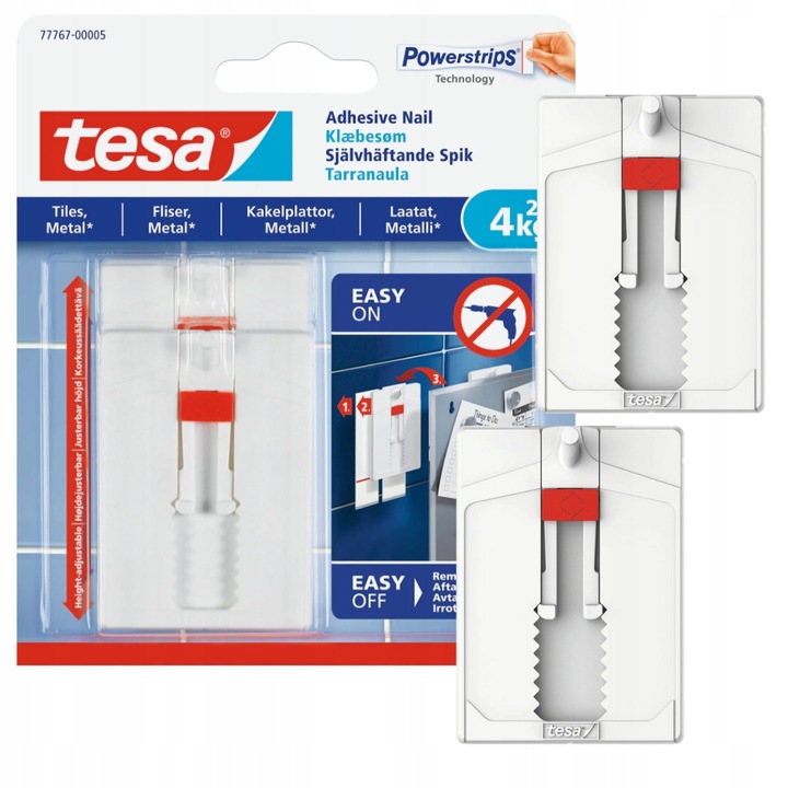➡ Регульовані клейові нігті TESA для плитки та металу , а прикріплені шматочки підтримують предмети до 4 кг на цвях. Завдяки інноваційній функції коригування висоти, вони дозволяють навіть привести предмети.