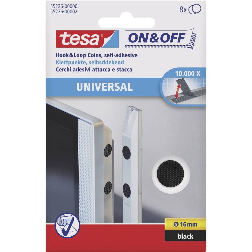 TESA On & Off 55226-00 -01 | Наклейки на липучках Tesa On and Off можна відкривати та закривати 1000 і 1 раз і легко знімати, коли більше не потрібні.