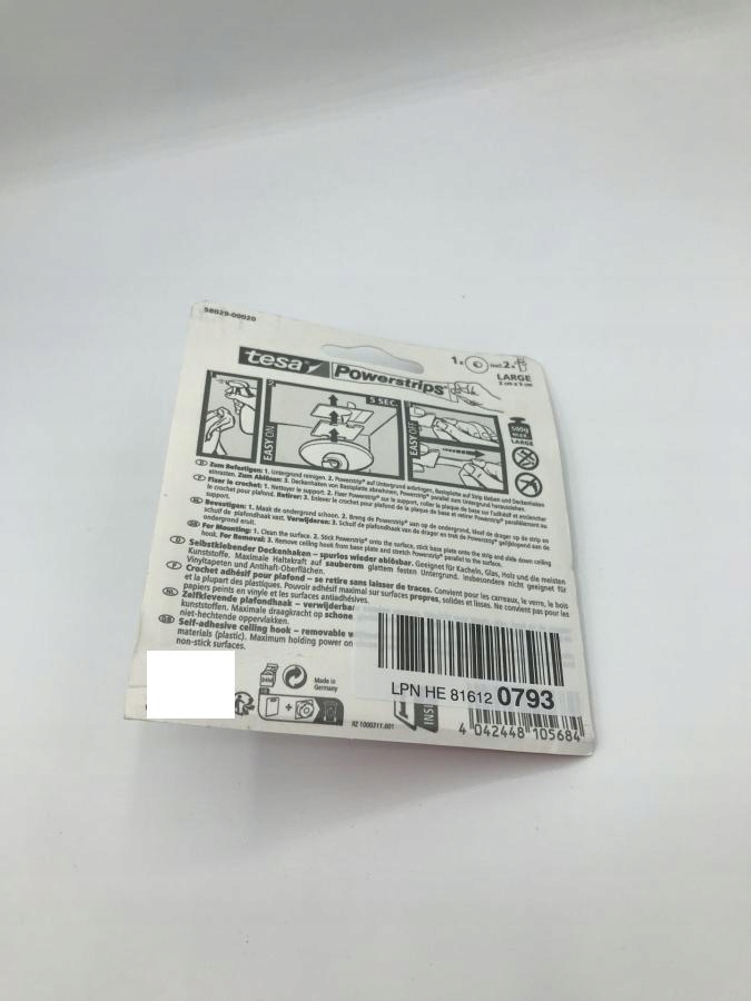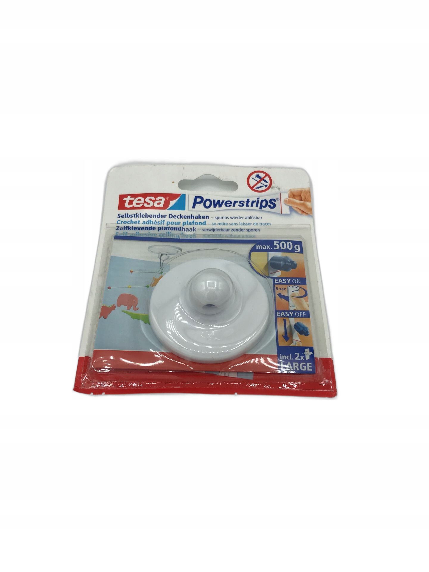 Для максимальної міцності зчеплення прикріпіть гачок за допомогою tesa Powerstrips Large, які входять у комплект – їх можна зняти, не покидаючи будь-які сліди та гачок можна використовувати повторно, використовуйте з tesa Powerstrips Large