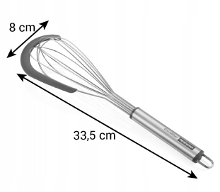 Ідеально підходить для збивання страв, з гнучким шпателем для розповсюдження кремів та тортів. Верхній виготовлений з високоякісної нержавіючої сталі та стійкого до тепла силікону (230 ° C). Можна мити в посудомийній машині.