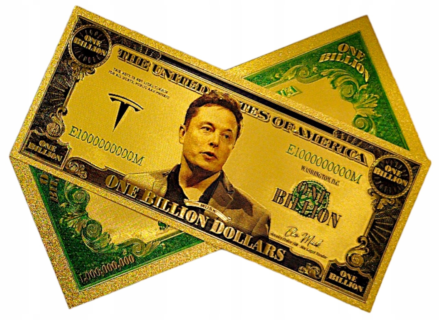 Надзвичайна банкнота, яка поєднує в собі дві ікони сучасного світу: Ілона Маска, візіонера технологій і підприємництва, і Tesla, символ революції в галузі електромобілів. Банкноту було точно позолочено, що надає їй не лише естетики, але й колекційної цінності, яка виходить за межі часу та тенденцій.