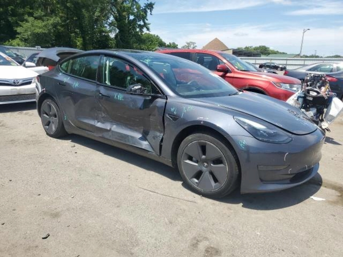 Tesla Model 3, автомобіль починається та їздить від страхової компанії.