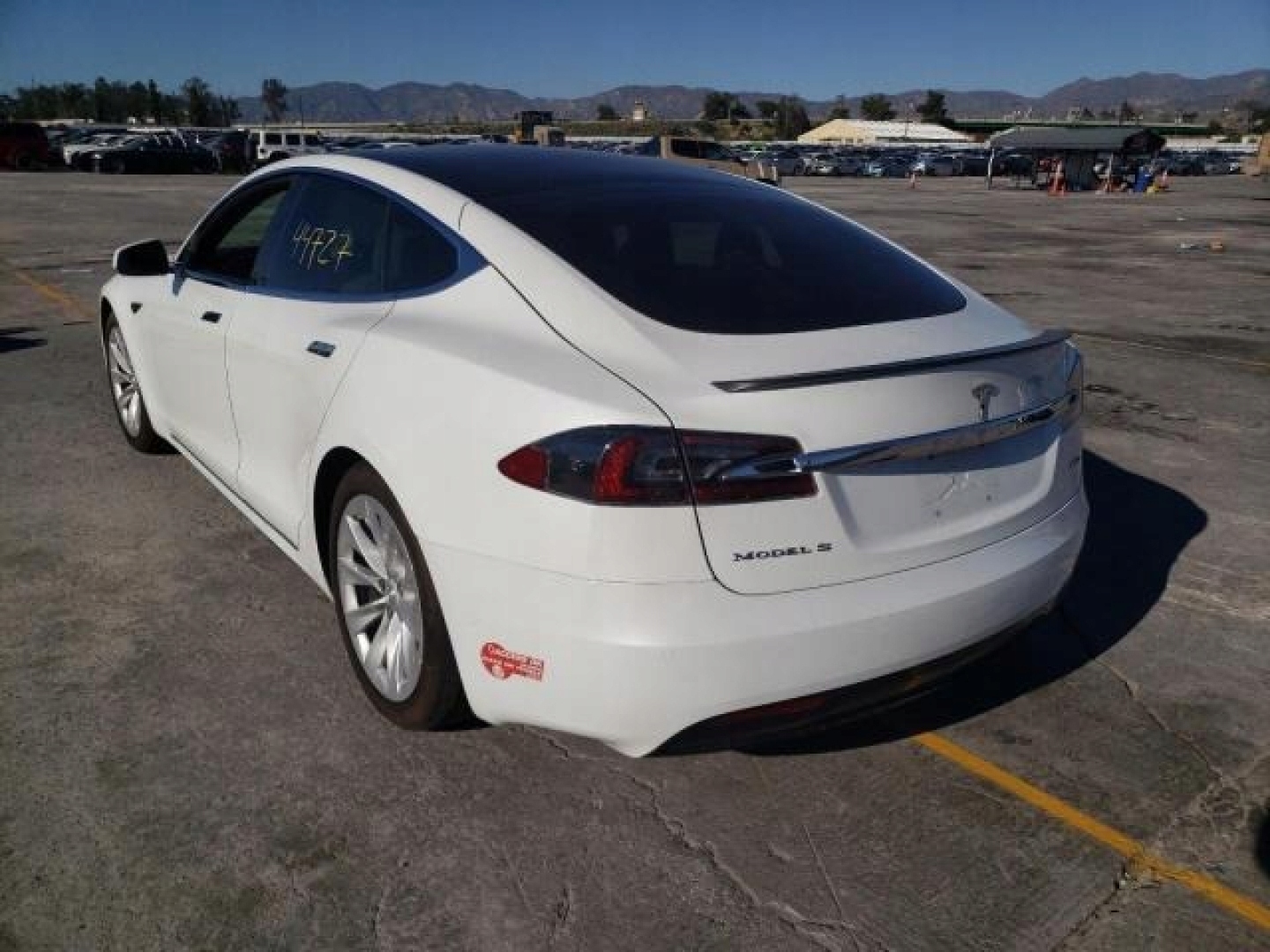 Модель Tesla S, автомобіль починається та приводить від страхової компанії, подряпаний лак.