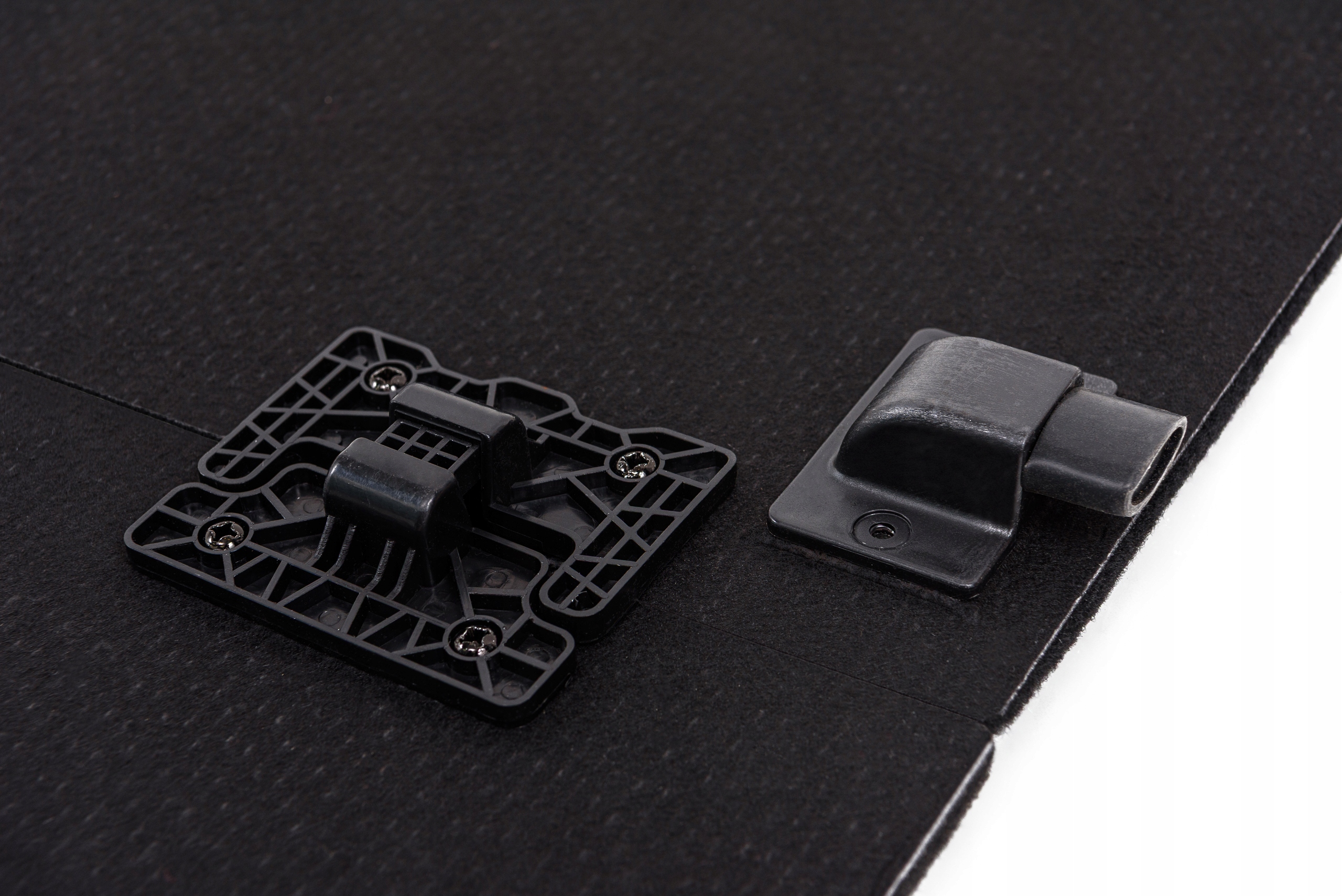 Чорна полиця багажника, присвячена моделі TESLA MODEL Y 2020-2025 (до рестайлінгу). Підходить як для версії, оснащеної заводською полицею, так і для версії без неї - завдяки додатковим напрямним, які входять у комплект.