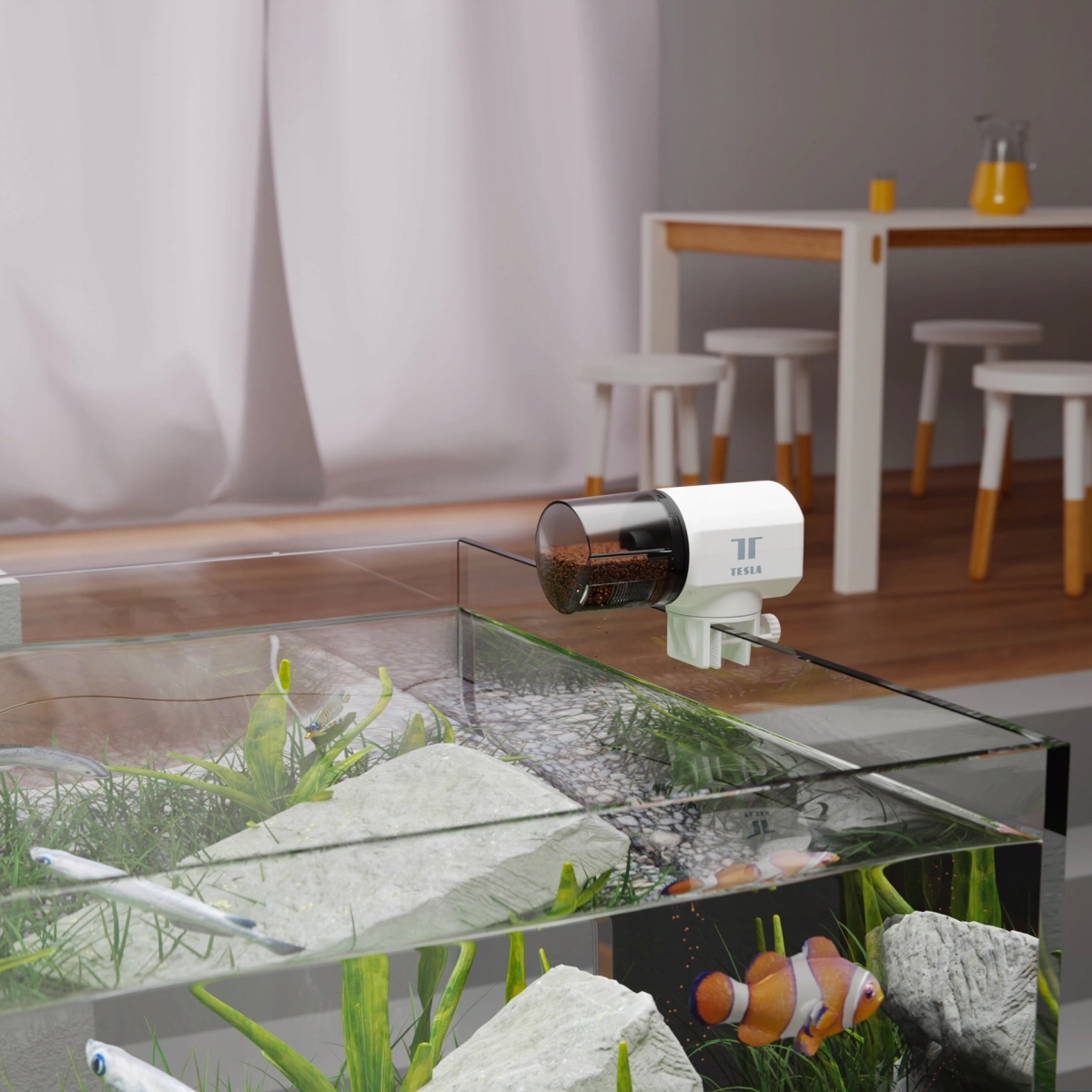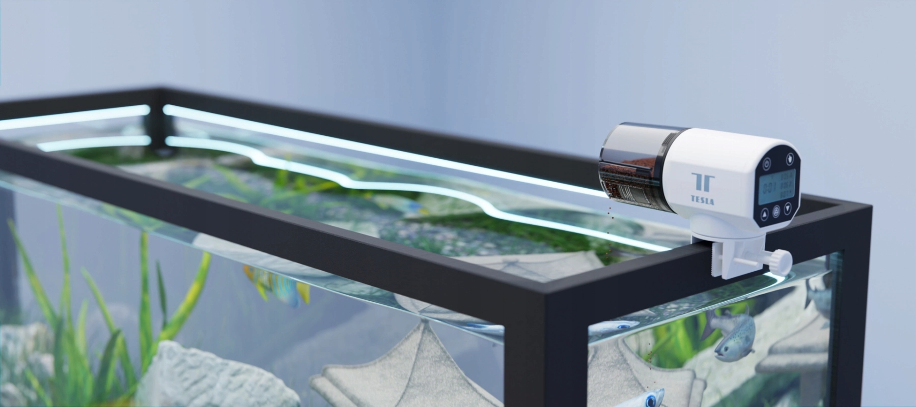 Про ваших риб і водних тварин буде добре піклуватися навіть у разі вашої тривалої відсутності. А завдяки Tesla Smart Fish Feeder ви матимете ідеальний огляд годування.