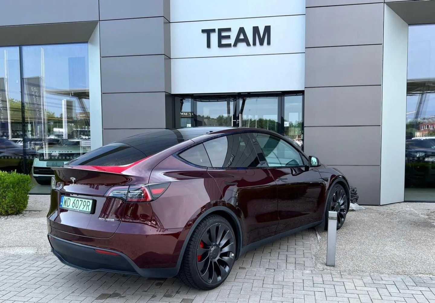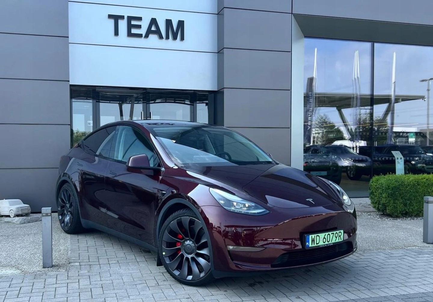 Tesla Y Performance – сучасний, повністю електричний компактний автомобіль 2023 року, що поєднує в собі інновації, комфорт і безпеку. Автомобіль привабливого темно-червоного кольору, ідеальний для людей, які цінують передові технології, динамічне водіння та автопілот.