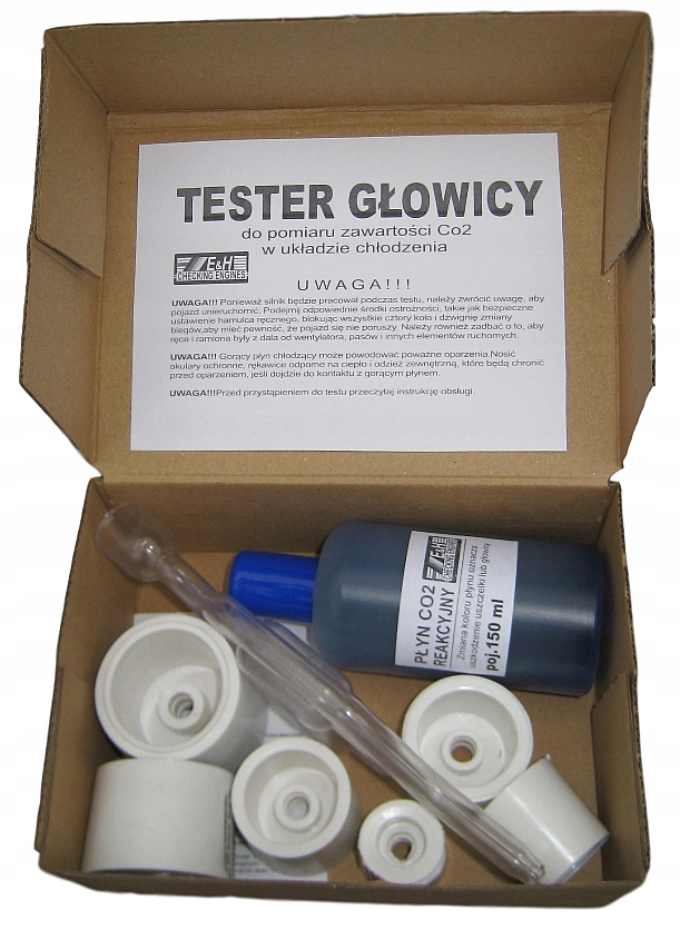 У разі пошкодження прокладки головки або самої головки, частина вихлопних газів, що містить, серед іншого, CO2 надходить в систему охолодження.Принцип роботи приладу заснований на вимірюванні вмісту CO2 - де спеціальна реакційна рідина реагує на підвищений вміст CO2 і змінює колір.