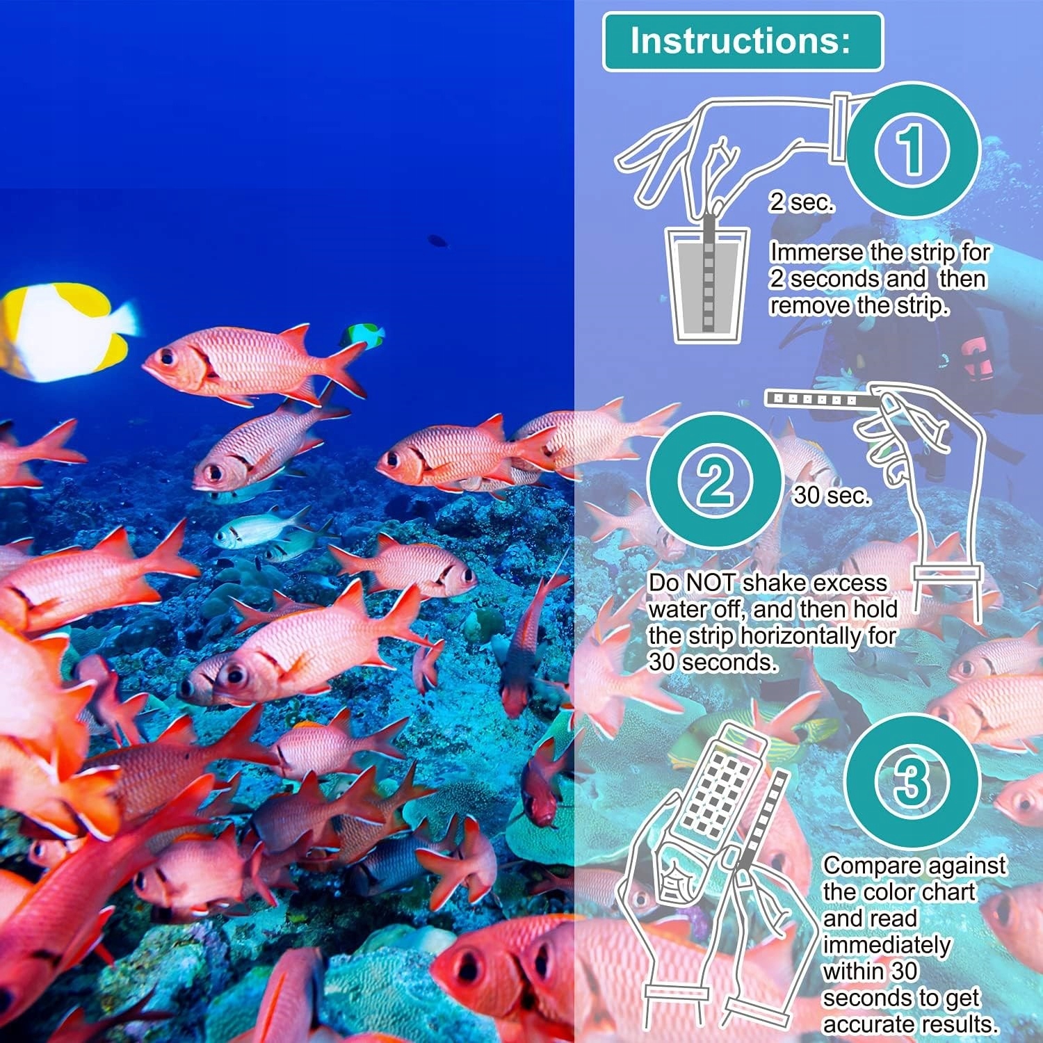 - Ви одразу дізнаєтеся рівень GH, NO3, NO2, Cl2, KH та pH вашої води.