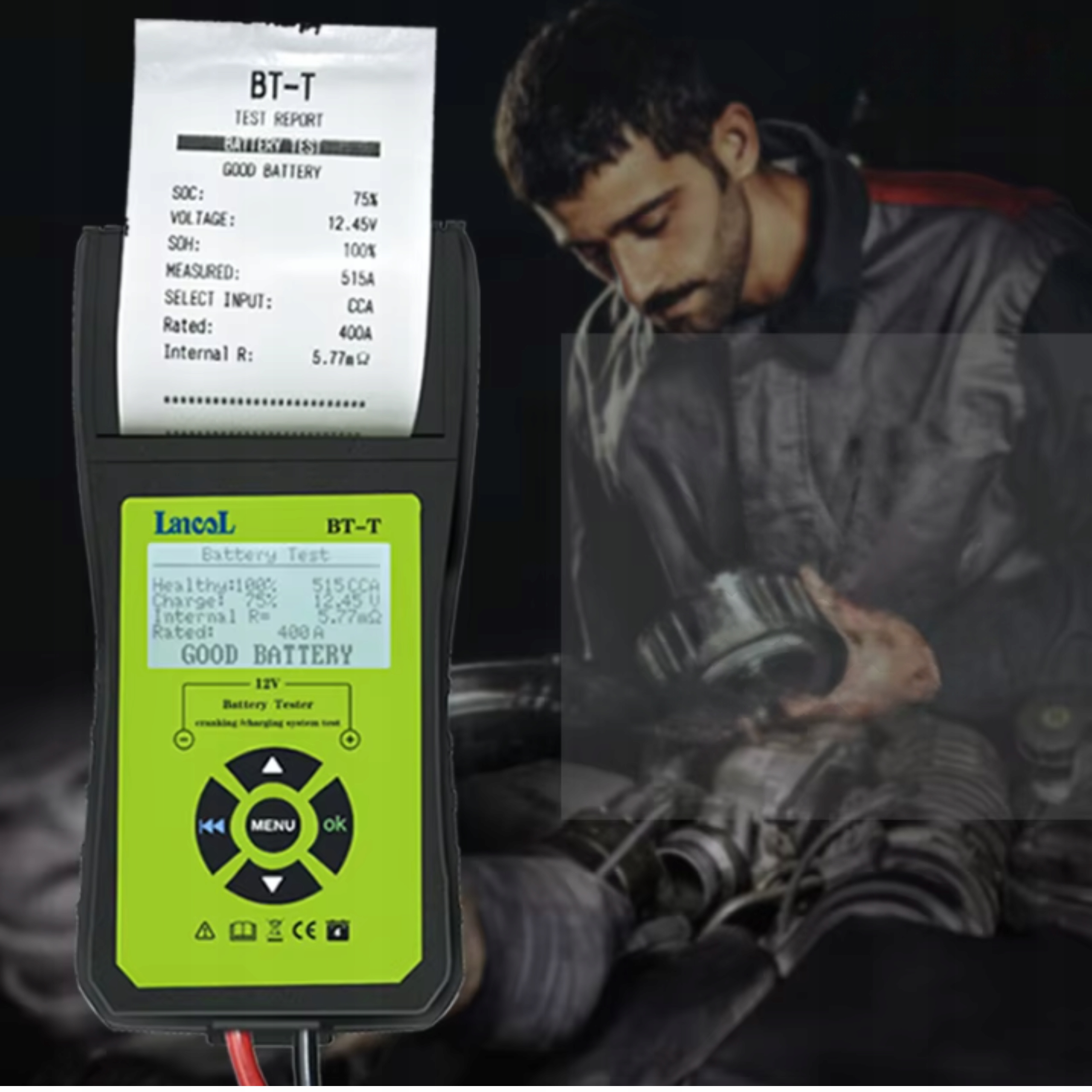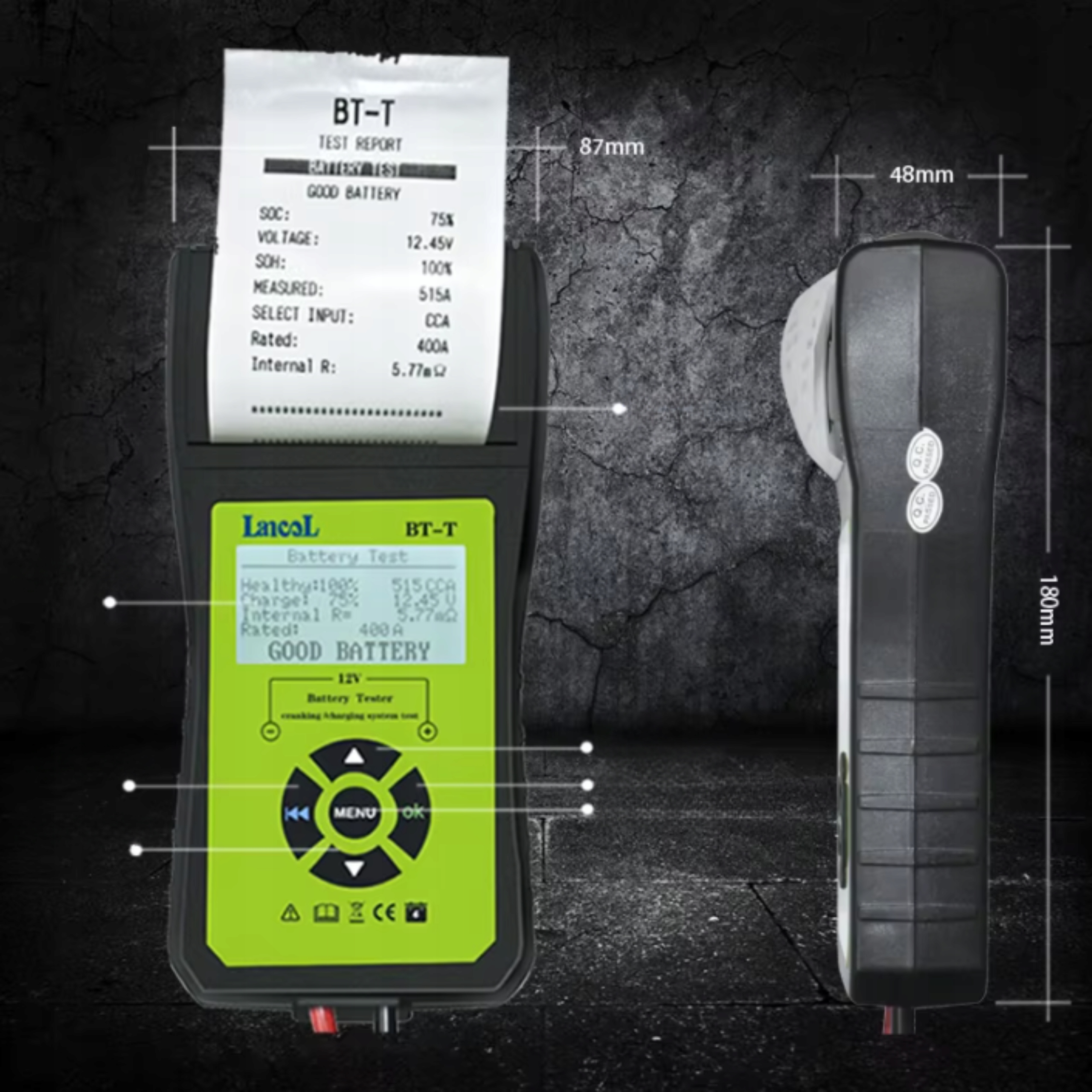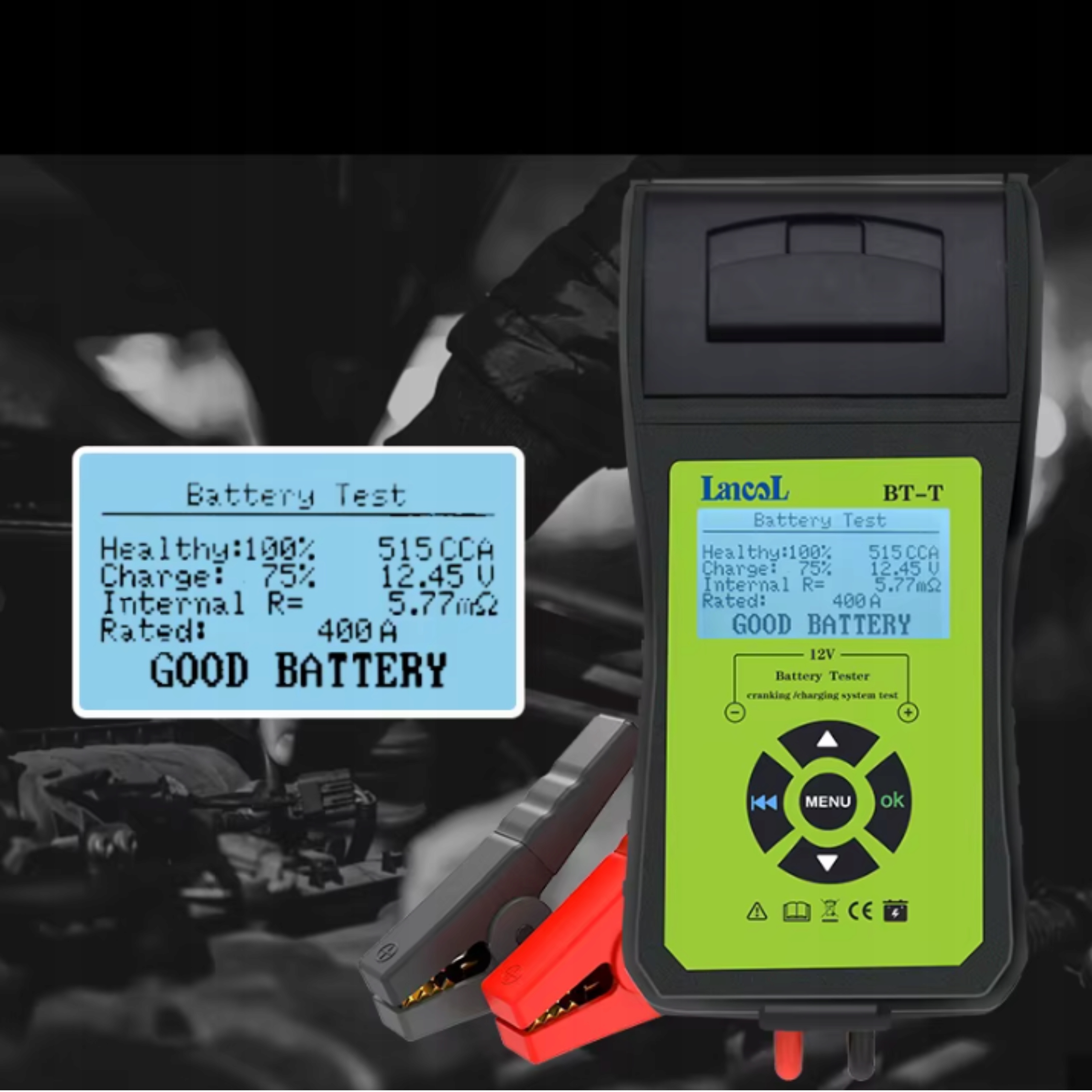 ⭐ Тестер батареї 12 В із принтером Цифровий автомобільний випрямляч ⭐