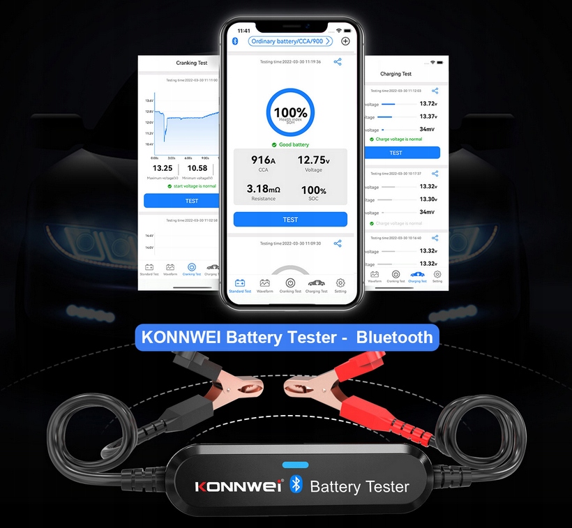 TESTER AKUMULATORÓW BLUETOOTH KONNWEI BK100 6V 12V
