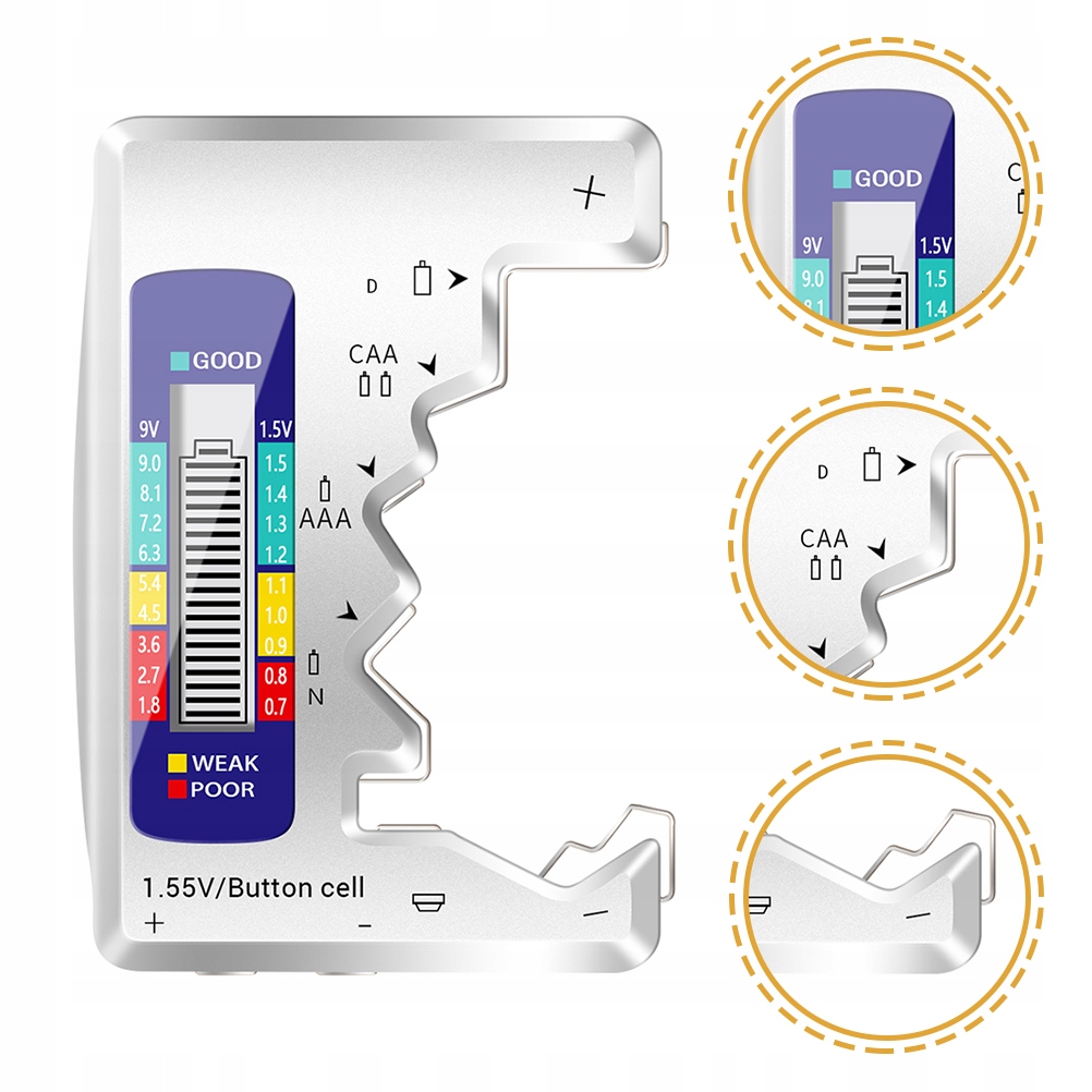 ✅Креативний ергономічний дизайн, підходить для тестування більшості батарей, таких як D-type, C-type, AA, 9V батареї тощо.