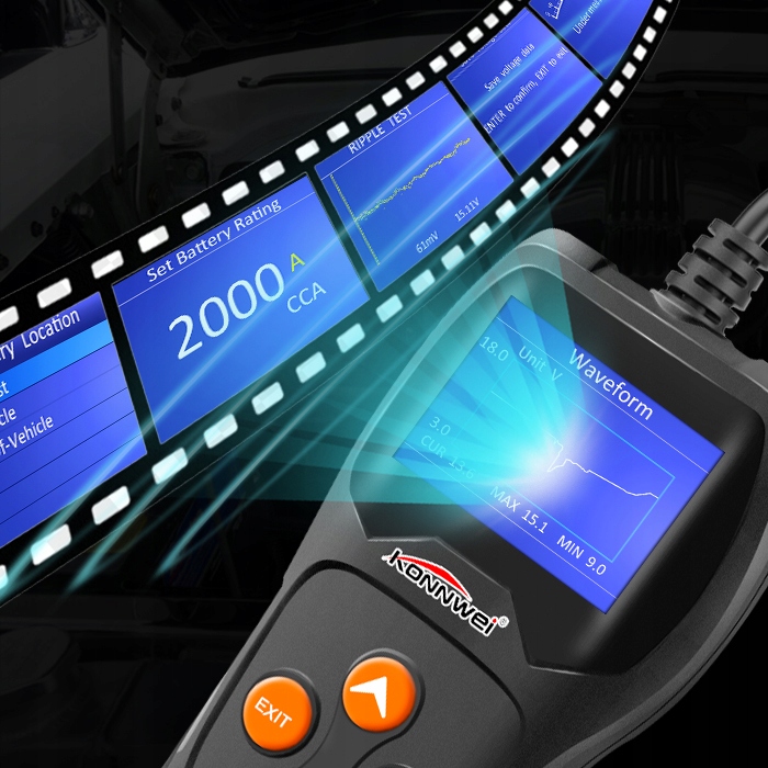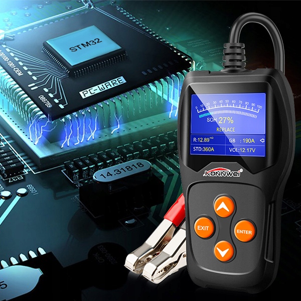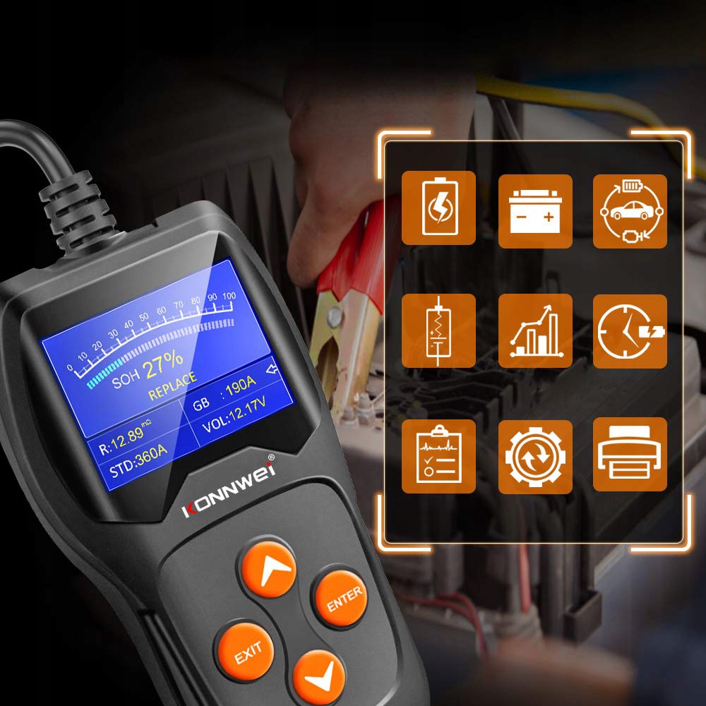 Діагностичний тестер автомобільних акумуляторів KW600 може працювати з усіма 12 V 100-2000 CCA акумуляторів, в тому числі із звичайними затопленими батареями, плоским AGM, спіральною AGM, як а також гель, такі як автомобіль, море, човен, мотоцикл, сонячні батареї тощо. -Парій, стан акумулятора та стан заряду.