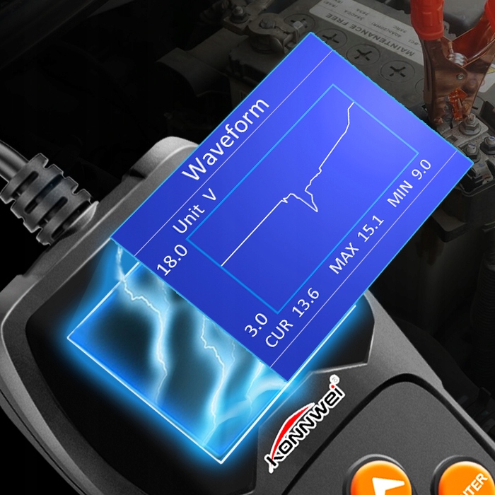 Тестер завантаження акумулятора автомобіля KW600 відображає результати тесту у вигляді тексту та діаграми, а також відображає напругу акумулятора в режимі реального часу хвиля. Завдяки інтелектуальному 2,4-дюймовому РК-екрану та основній системі STM-32 найвищого класу, простим для читання та швидше! Крім того, KW600 також підтримує послугу оновлення програмного забезпечення.