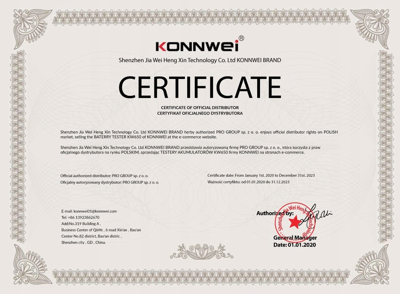 Ви купуєте продукт KW710 в офіційного дистриб’ютора бренду Konnwei у Польщі, тож маєте: